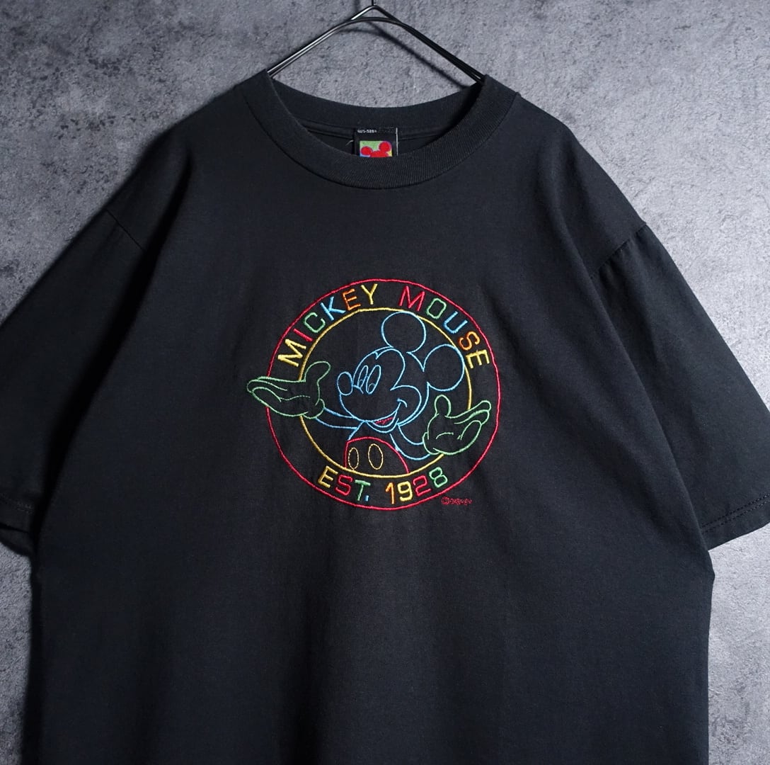 90年代のディズニーよりブラックのミッキー刺繍デザインTシャツが入荷です。