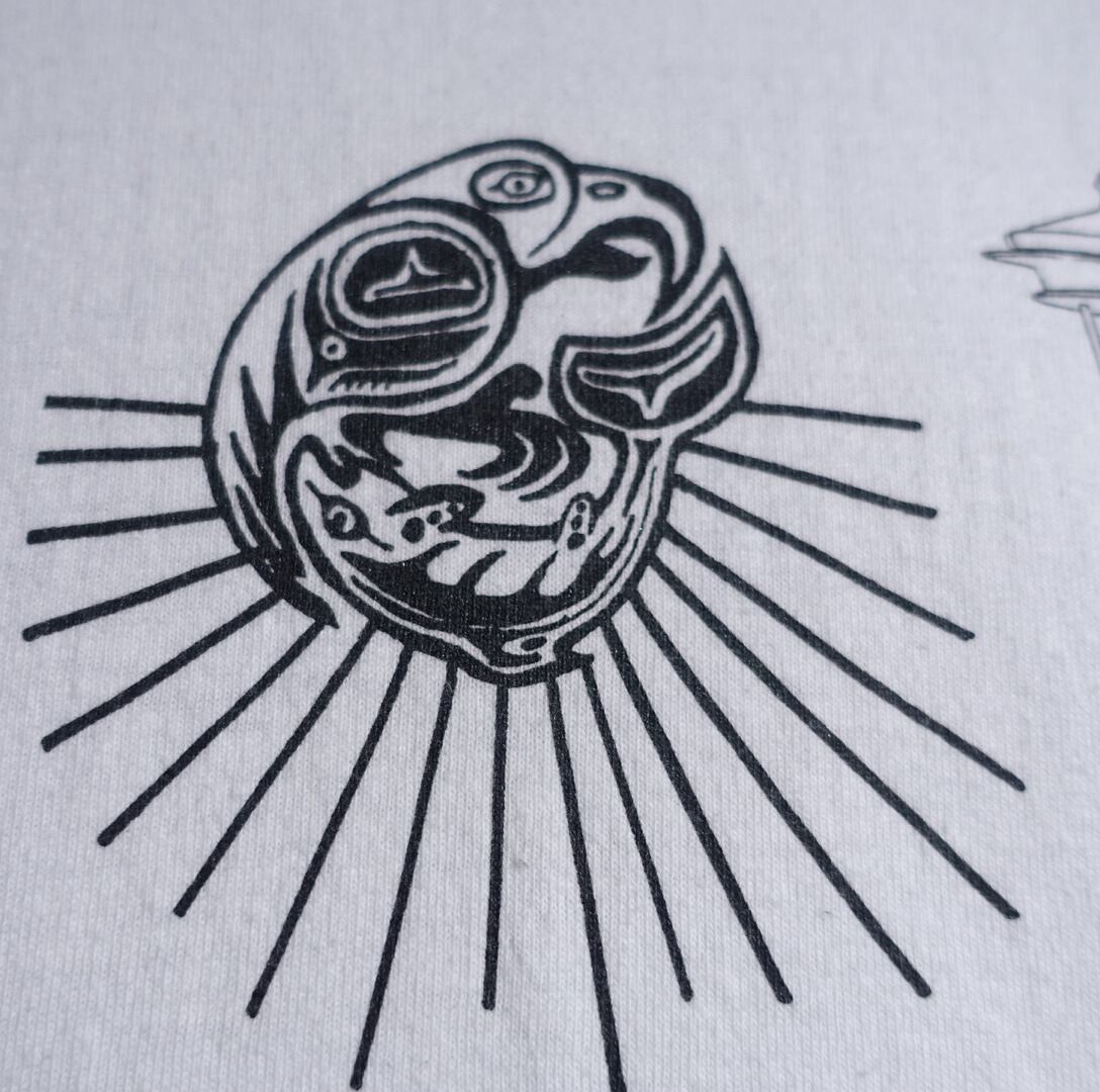 フロントは左胸に羊とデザインの効いたアルファベットをあしらったワンポイントプリントデザイン。