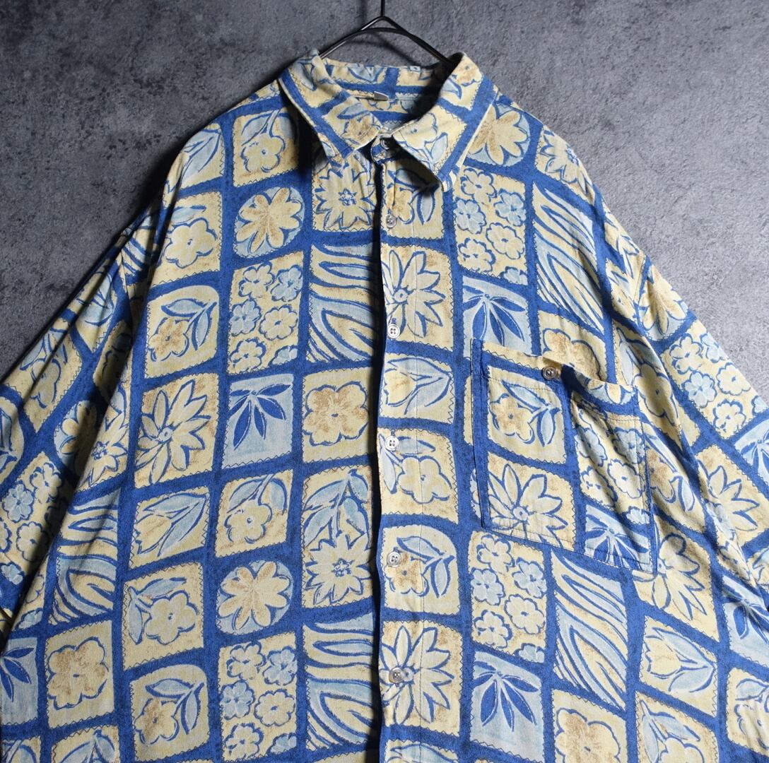 EURO Blue & Yellow Artistic Floral Motif Design Shirt