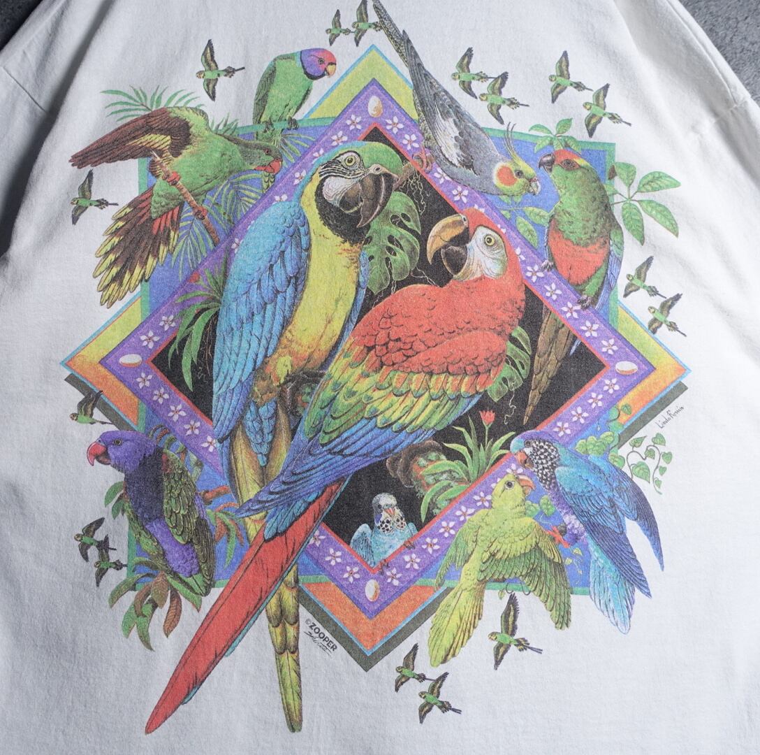 90年代アメリカ製のanvilよりホワイトのオウム両面プリントTシャツが入荷です。