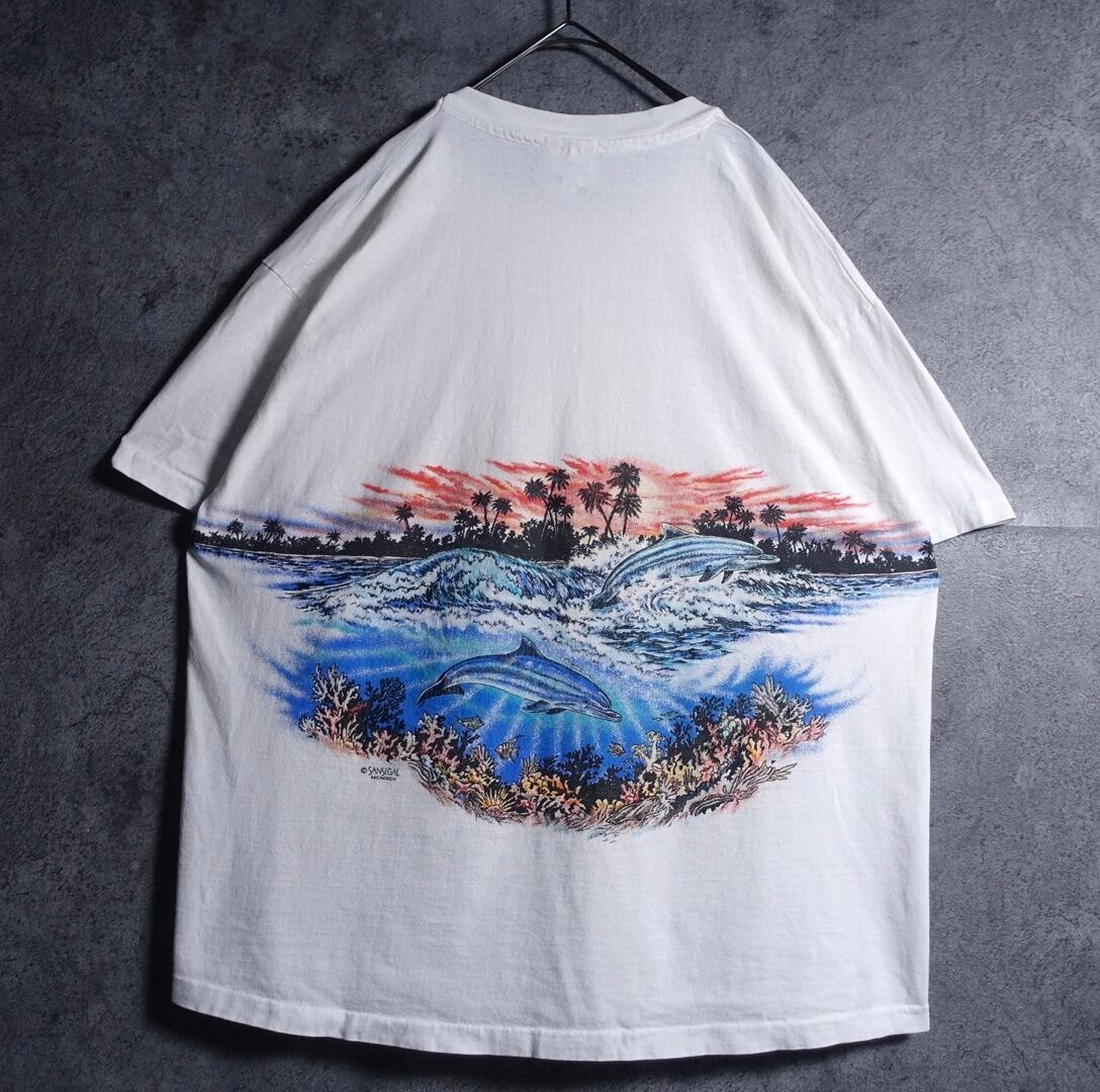90年代アメリカ製のSANSEGALよりスペシャルなホワイトのイルカ&風景両面プリントTシャツが入荷です。