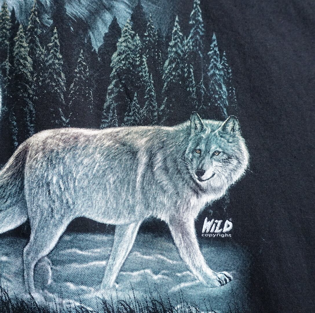 90年代のWiLDよりブラックのウルフ両面プリントTシャツが入荷です。