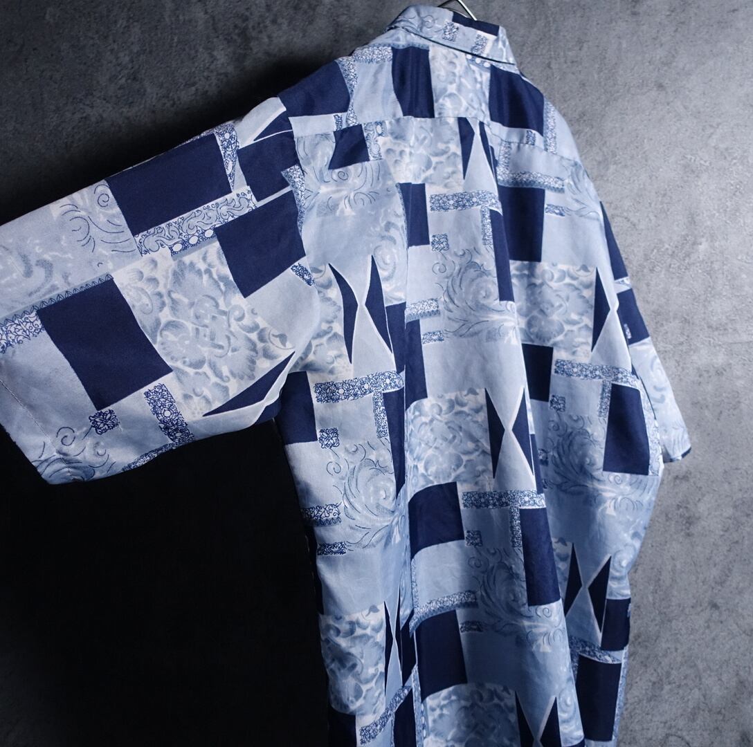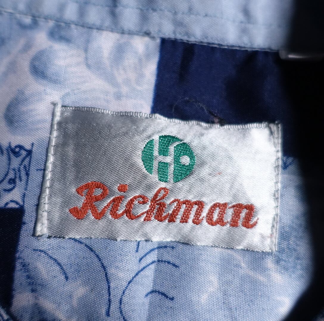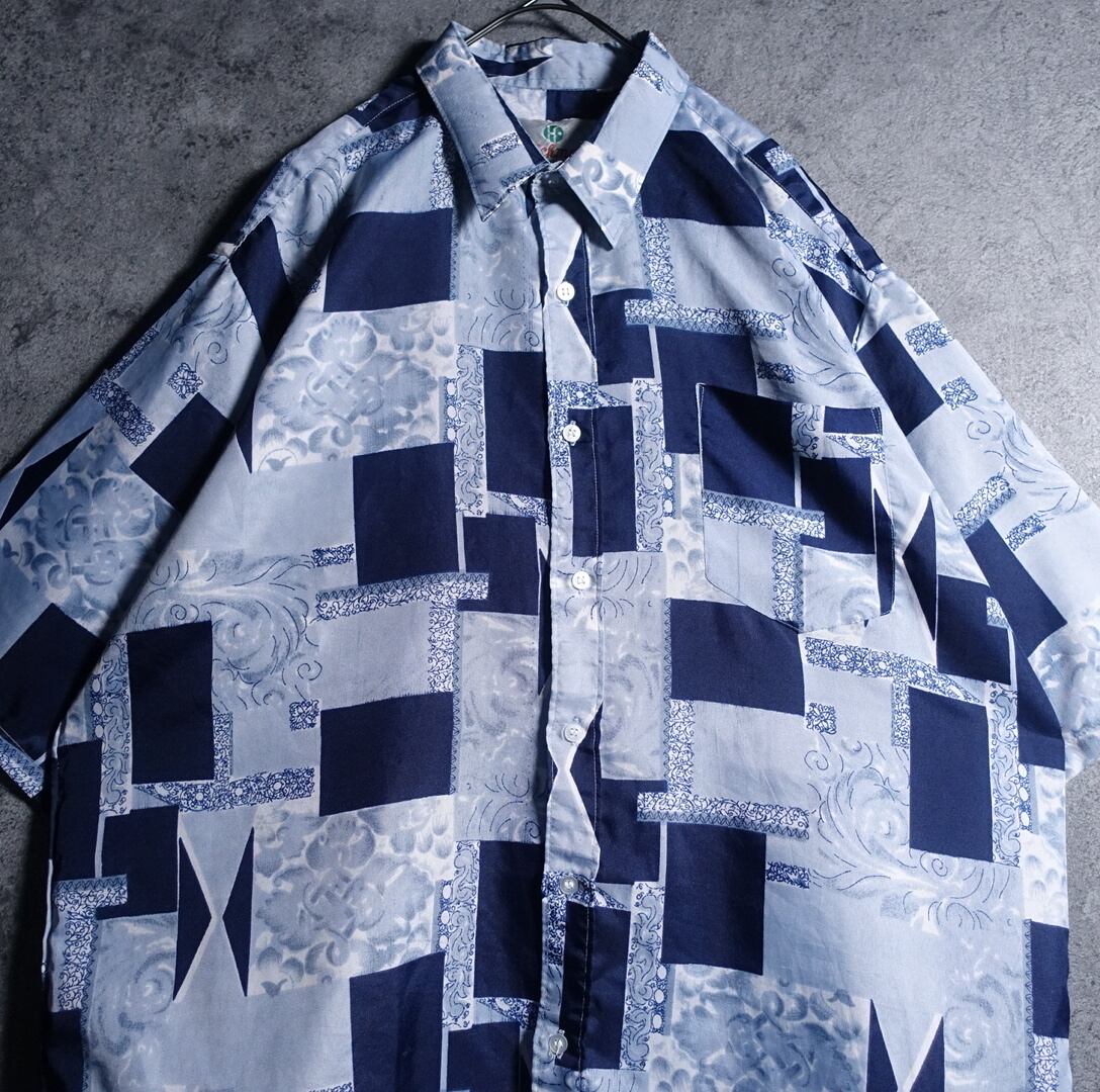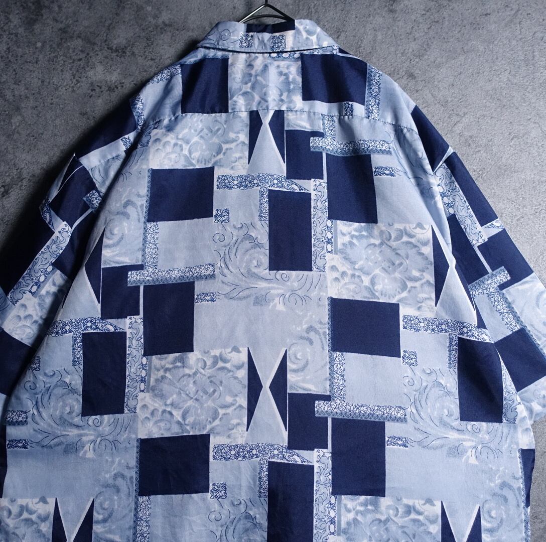 ユーロのブルーパッチワークデザインシャツが入荷です。