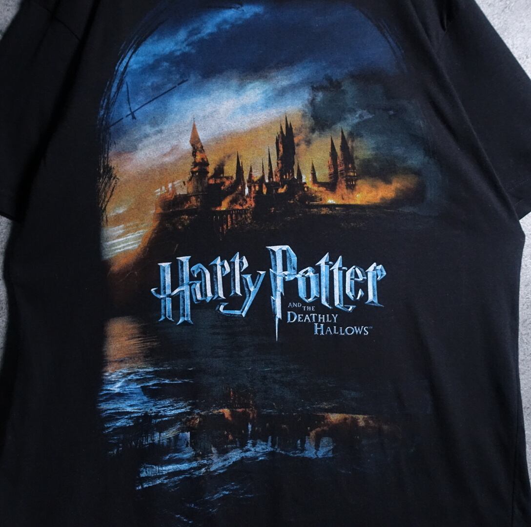 フロントにヴォルデモート卿に攻撃されたホグワーツ城とアルファベットロゴを大きくあしらったグットプリントデザイン。