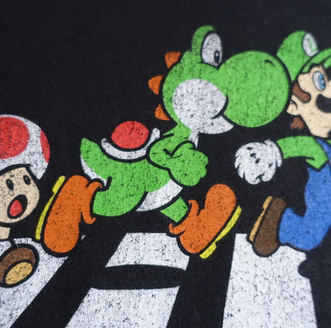 “SUPER MARIO” Black Beatles parody print T-shirt