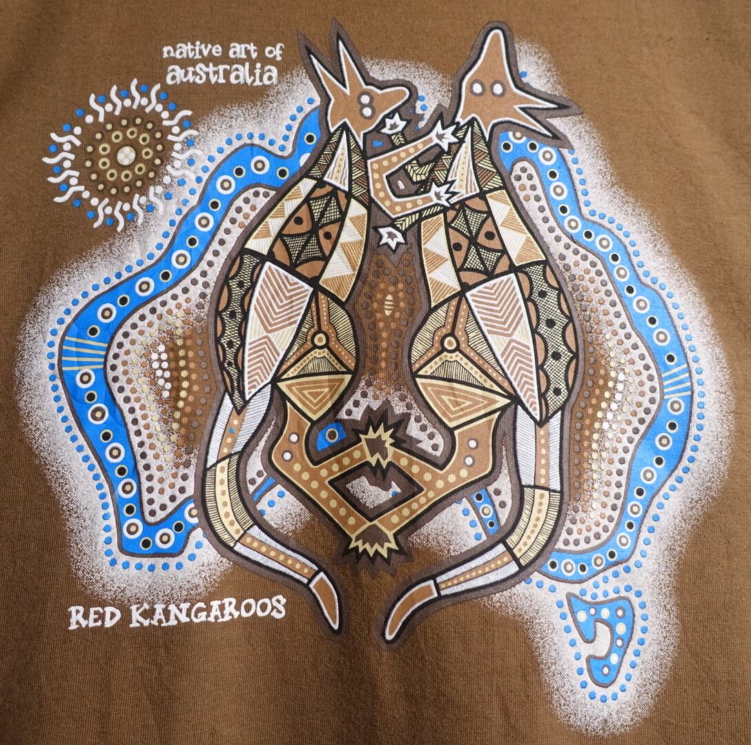 フロントに2頭の争うカンガルーをネイティブアートにしてあしらったアーティスティックなデザイン。