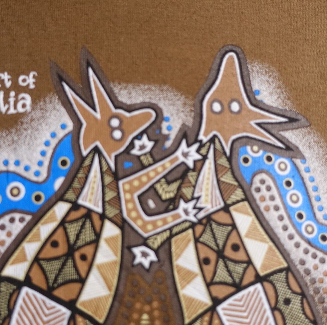ブラウンのカンガルーネイティブアートプリントTシャツが入荷です。