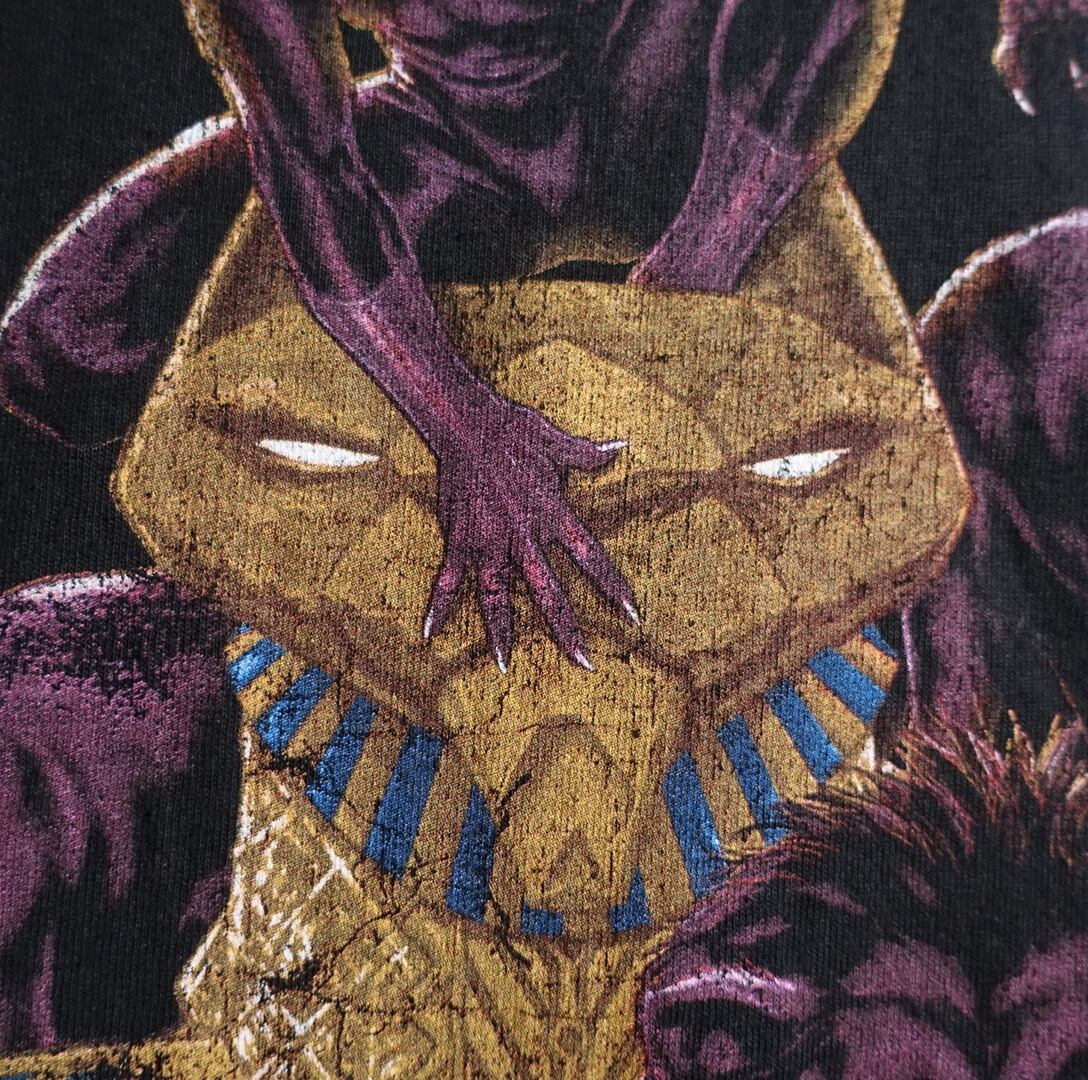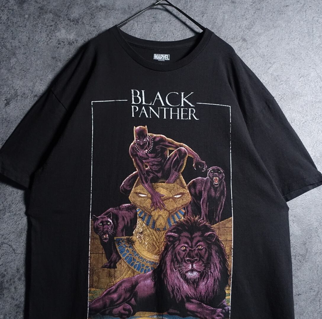 フロントにワカンダの王ブラックパンサーとライオン、パンサーをバランスよくあしらったグットプリントデザイン。