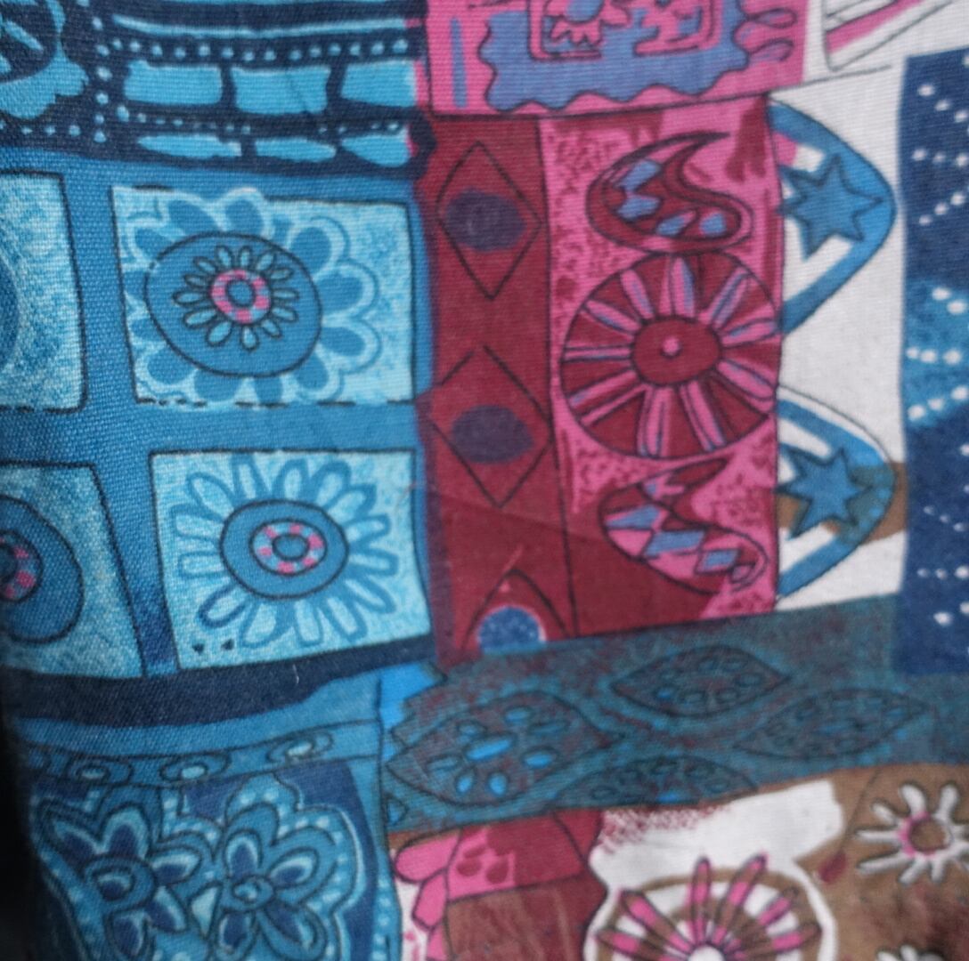 様々な幾何学模様をパッチワークのように全面にあしらったアーティスティックなデザイン。