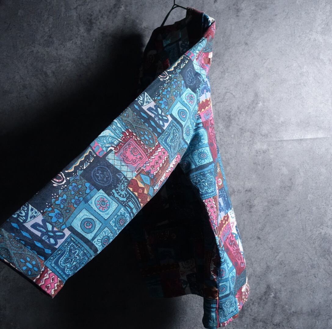 スペシャルな幾何学パッチワークデザインのイージーテーラードジャケットが入荷です。