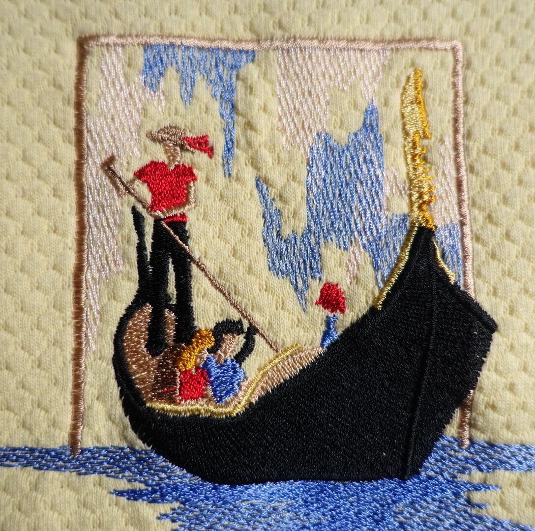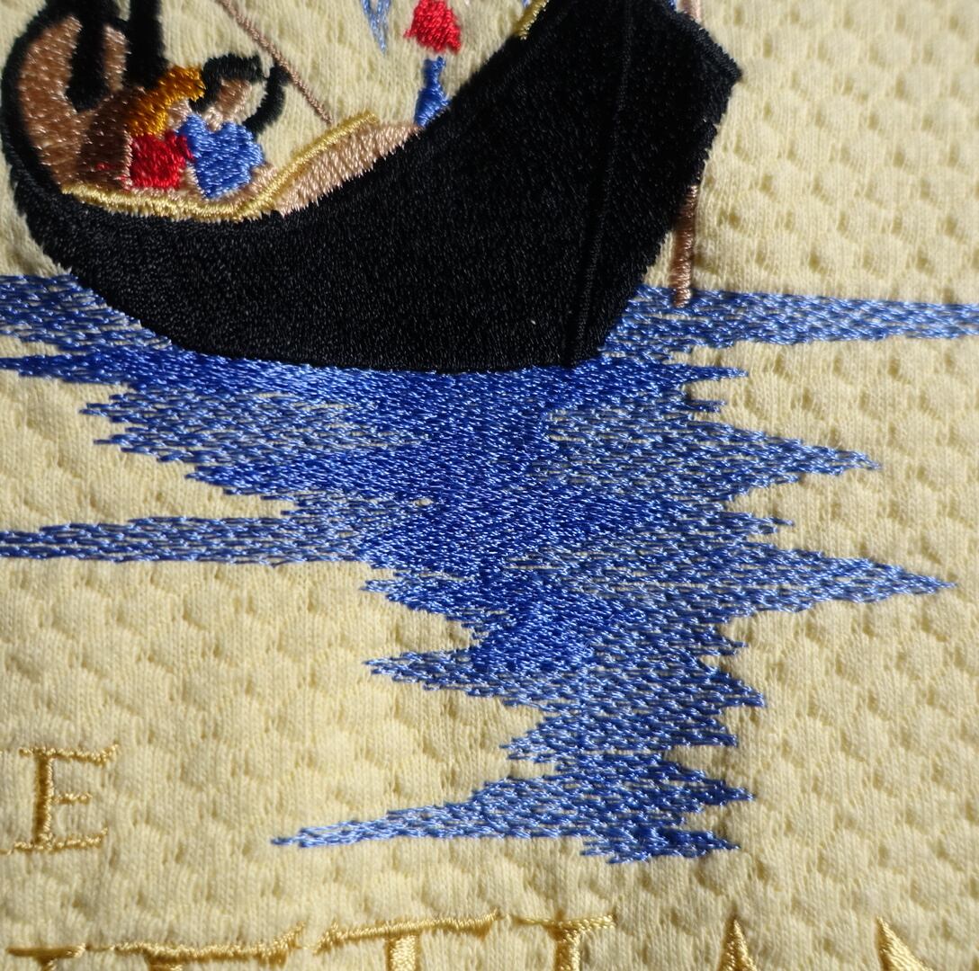 フロントに水の都ベネチアの風景刺繍を施した洒落たデザイン。