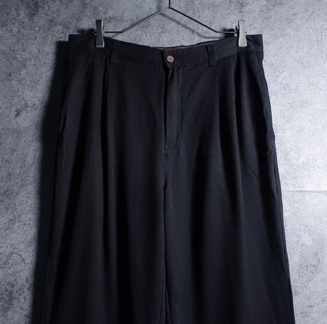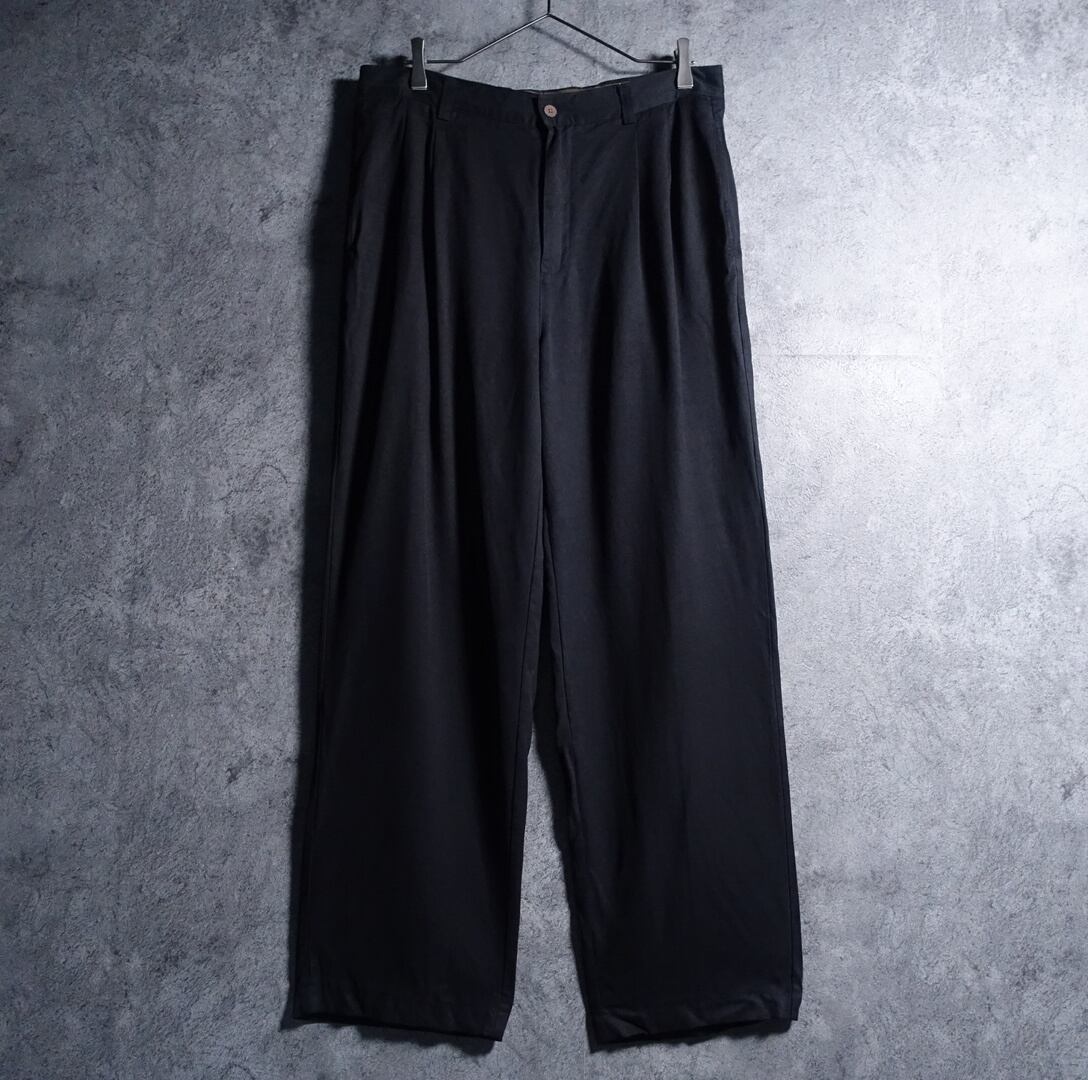 00s “TOMMY BAHAMA” Black 2-Tuck Wide Tapered Silk Slacks