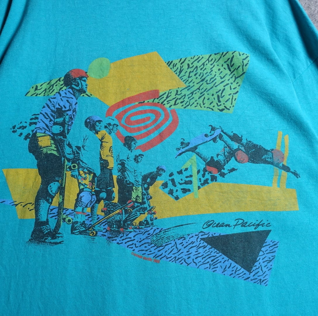 80年代アメリカ製のocean pacificよりスペシャルなスケートボーダープリントTシャツが入荷です。