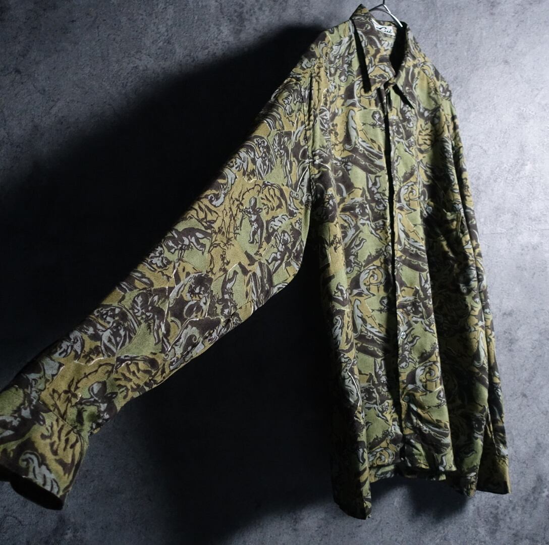 マルチカラーの抽象柄 デザインシャツが入荷です。