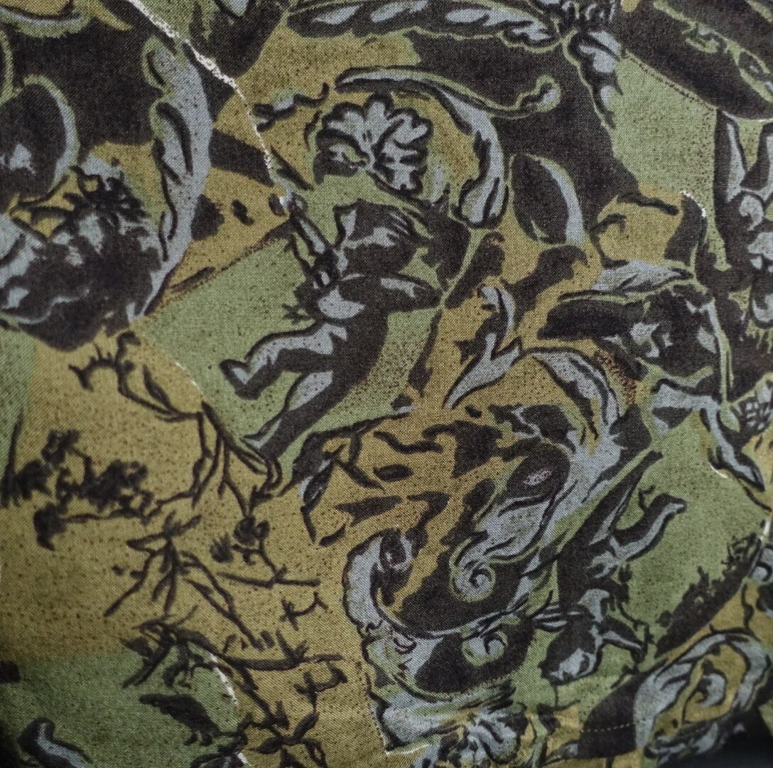素材は恐らくレーヨン100%で美しい光沢感があり、柔らかくドレープ性のある生地感となっています。