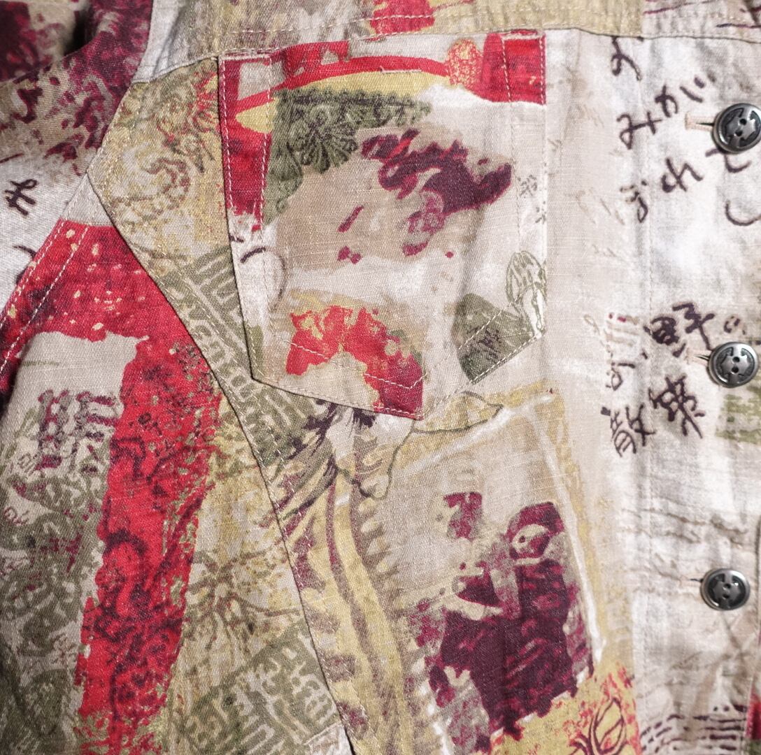 ボトムスはブラックや柄の色を拾ったスラックスは勿論、デニムやカーゴパンツとあわせていただくのもオススメです。