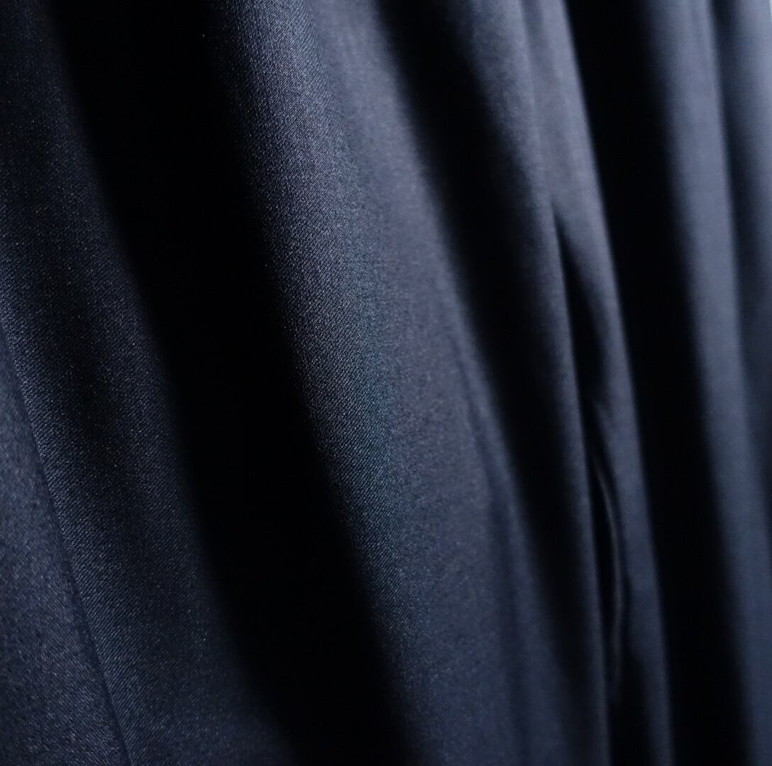 素材は恐らくサマーウールで高級感のある美しい光沢感があり、ドレープ性のある生地感となっています。