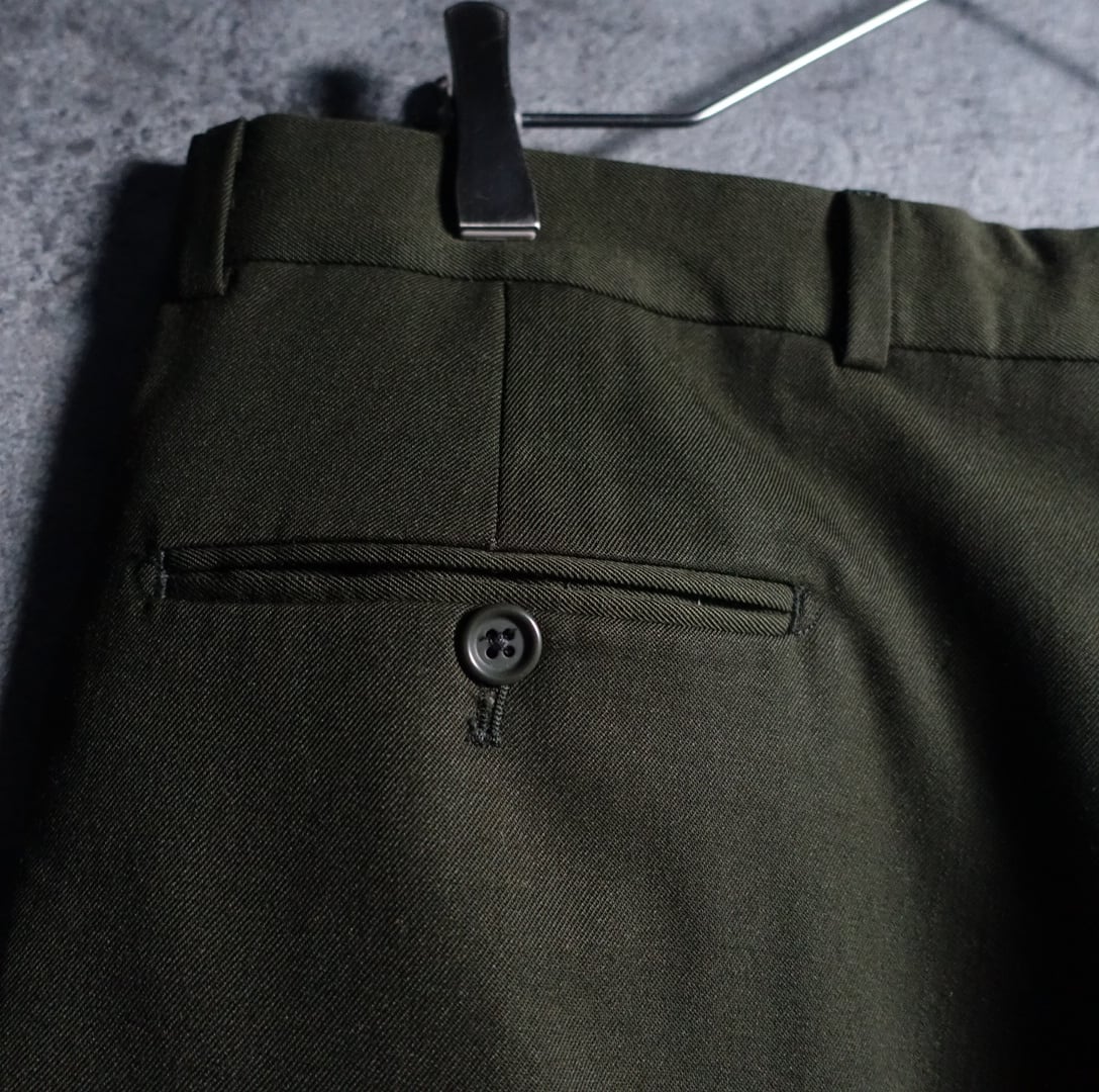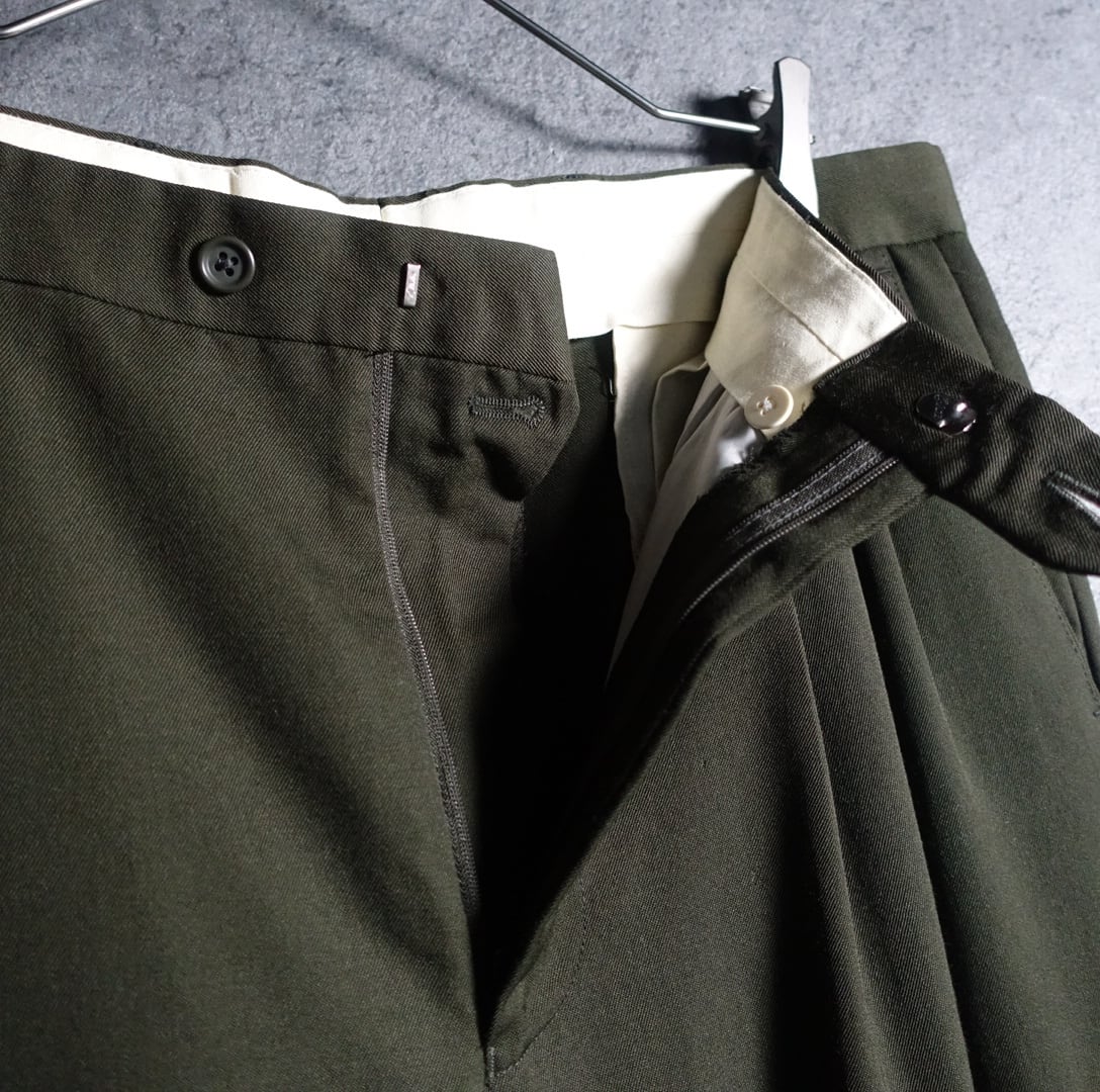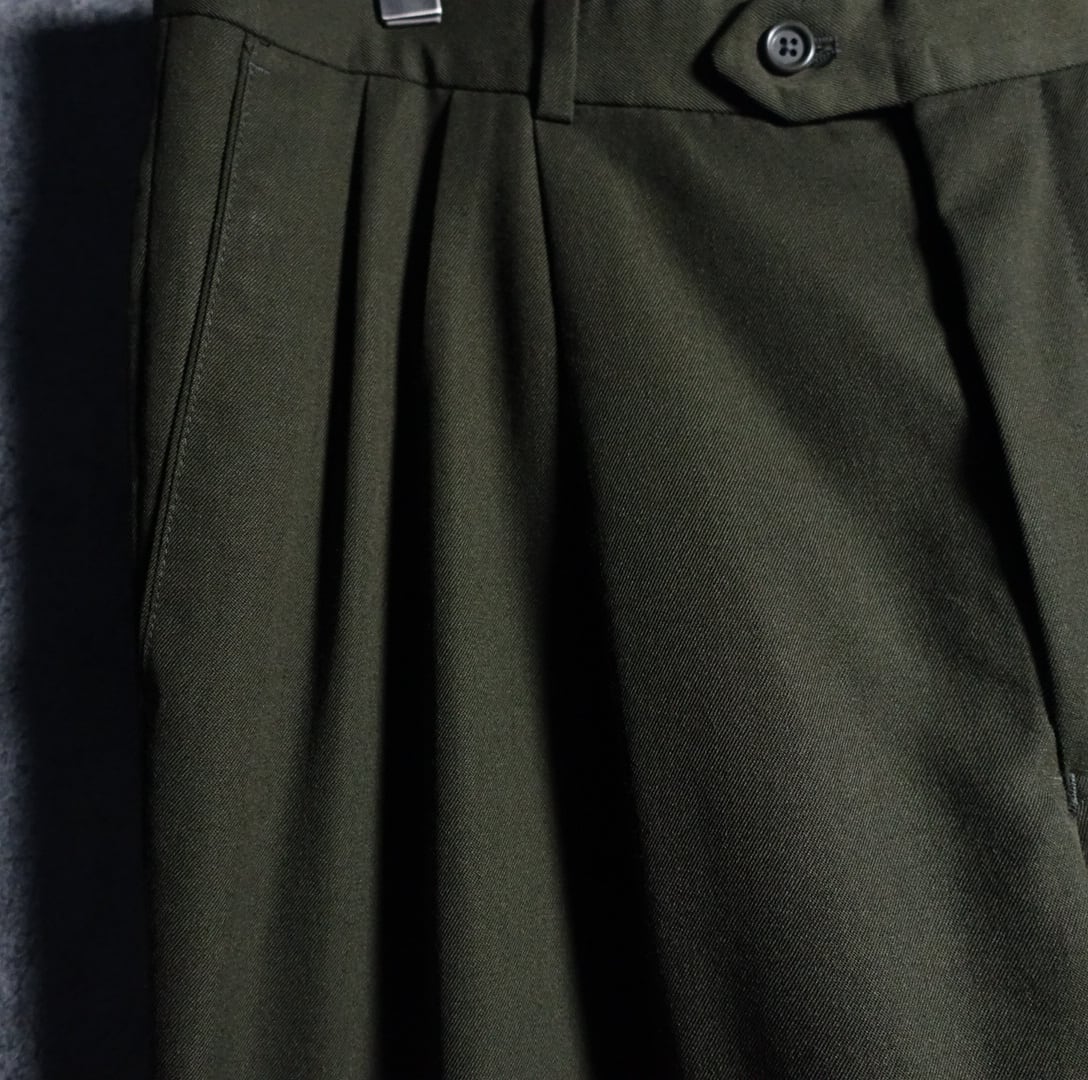 カナダ製のPAUL DIONEよりグリーンの2タックワイドテーパードスラックスが入荷です。