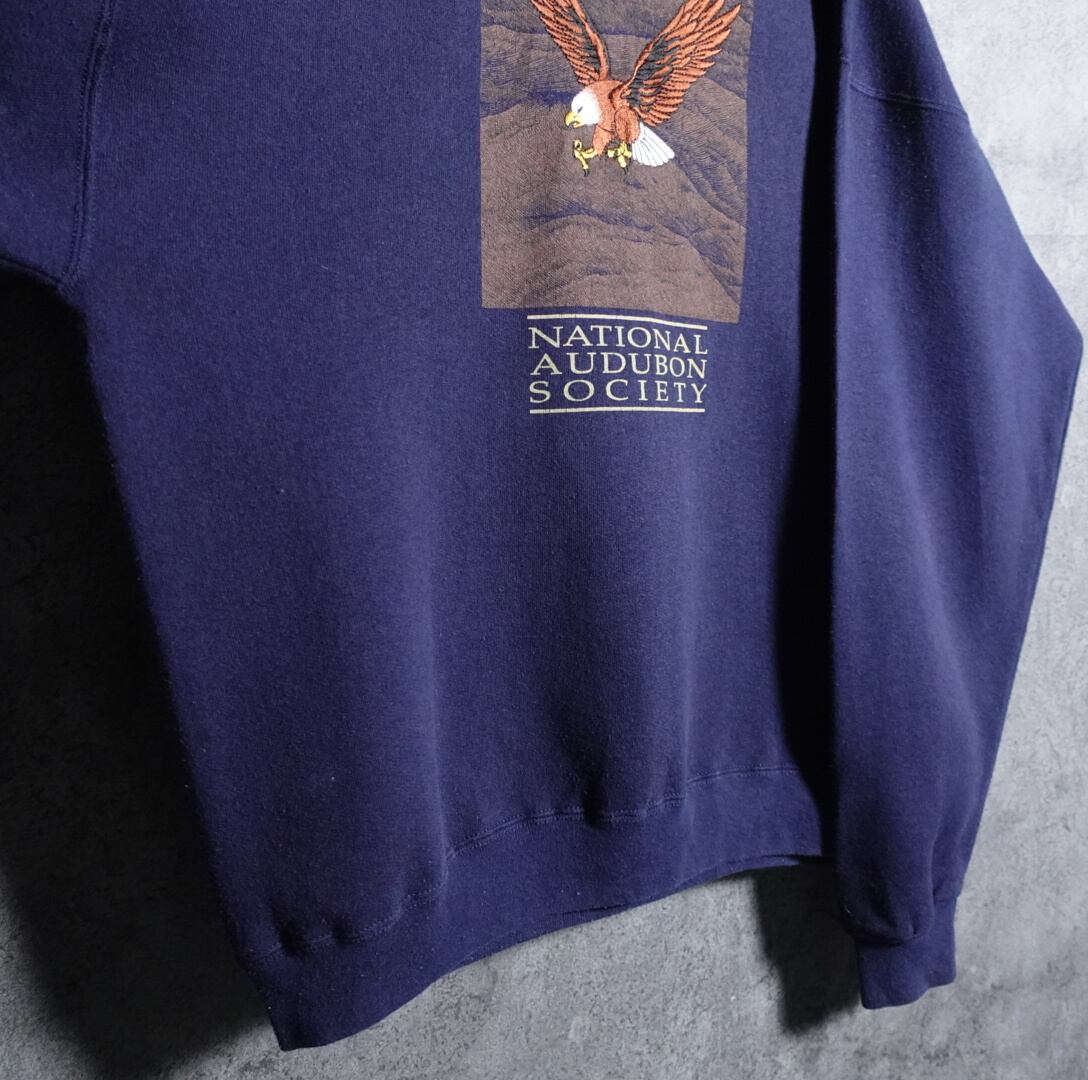 90年代アメリカ製のmarathonよりネイビーのホークアニマル刺繍スウェットが入荷です。