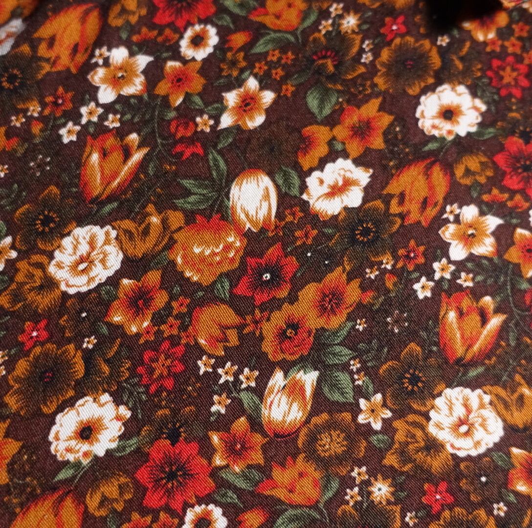 ブラウンベースにオレンジ、ホワイト、グリーンの秋らしさのあるグッドマルチカラーリング。