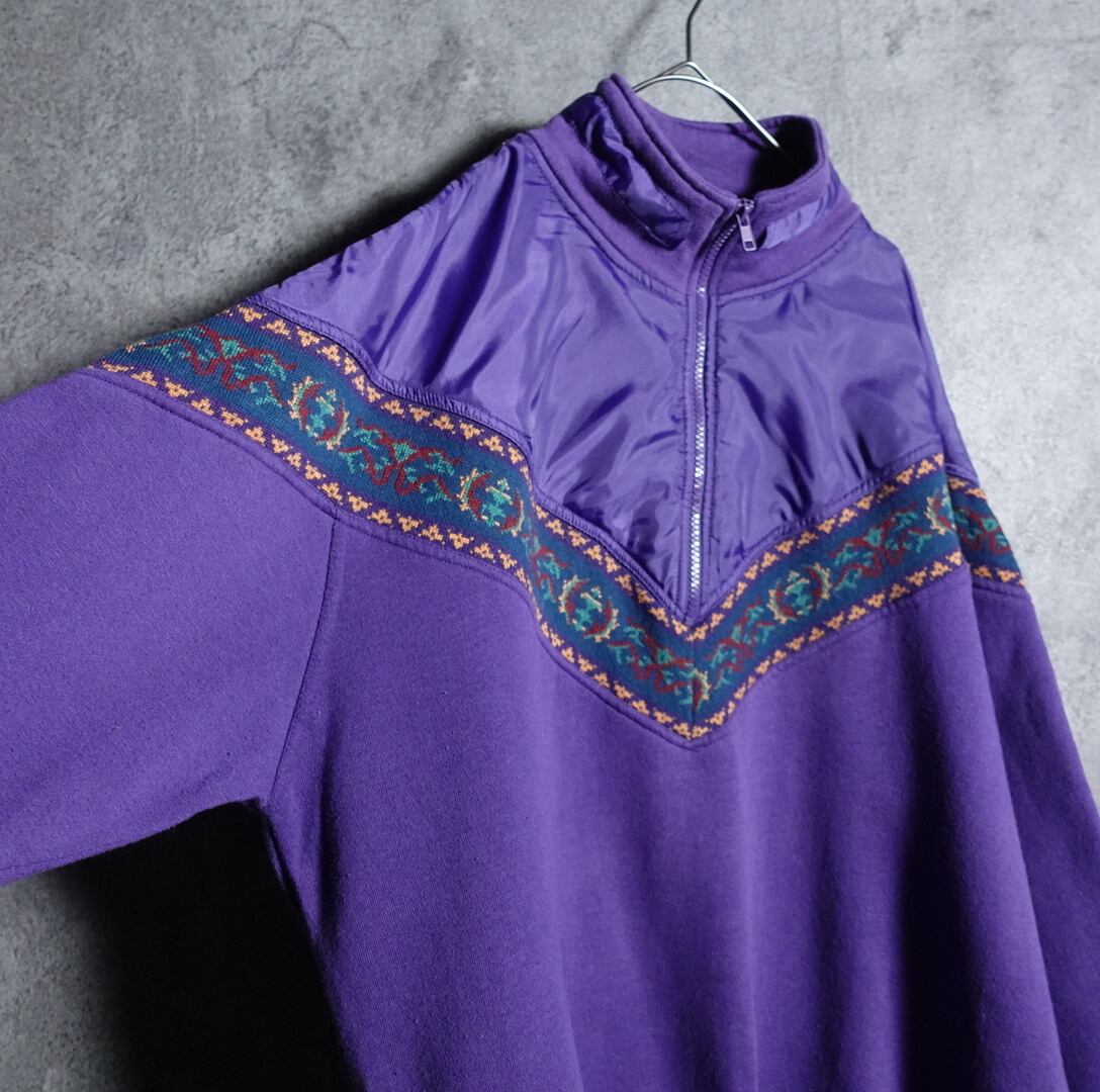 パープルのナイロン&ニット切替のハーフジップスウェットが入荷です。