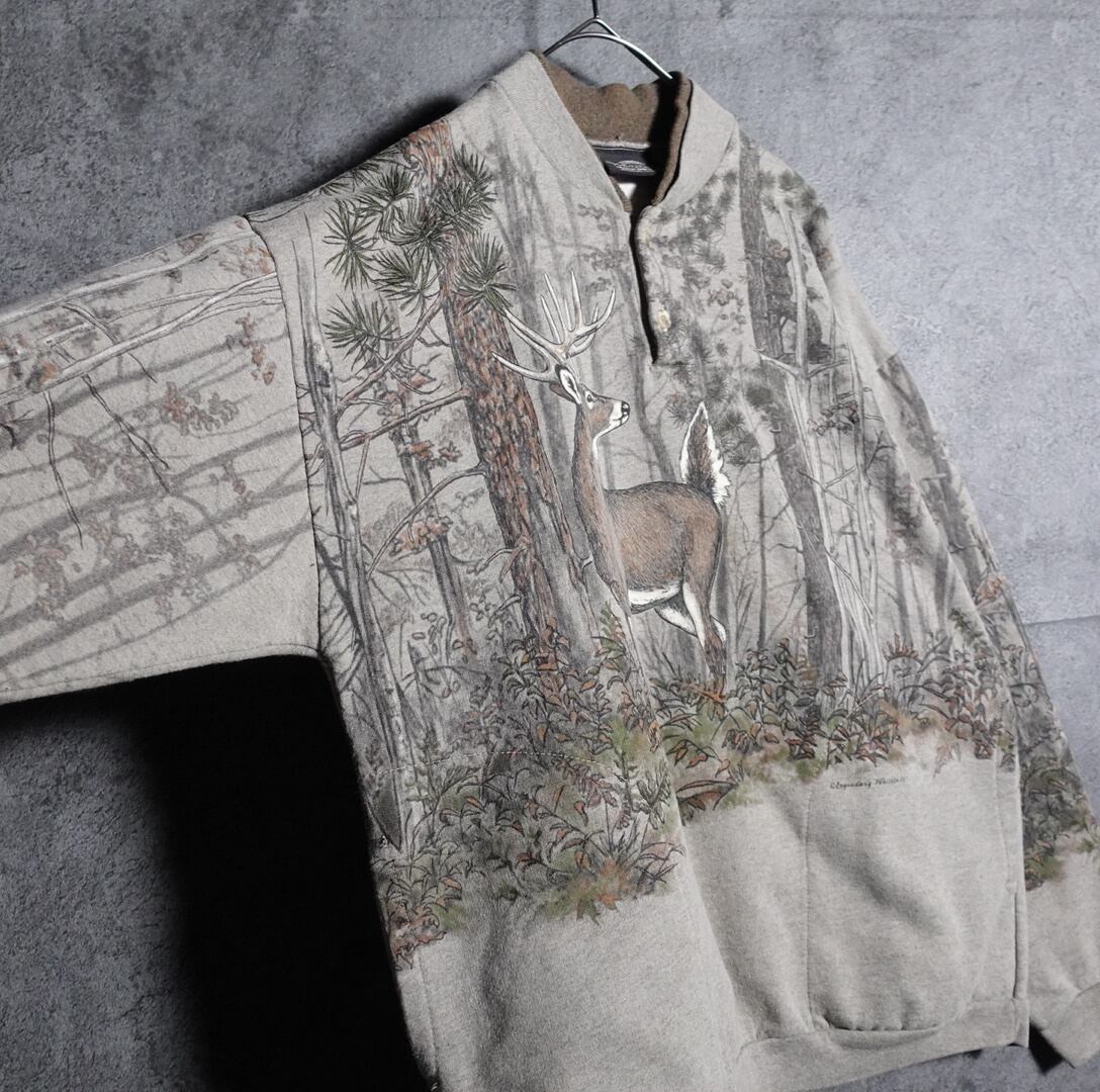 カーキをベースに森林に佇むシカの風景を全面にあしらったスペシャルなデザイン。