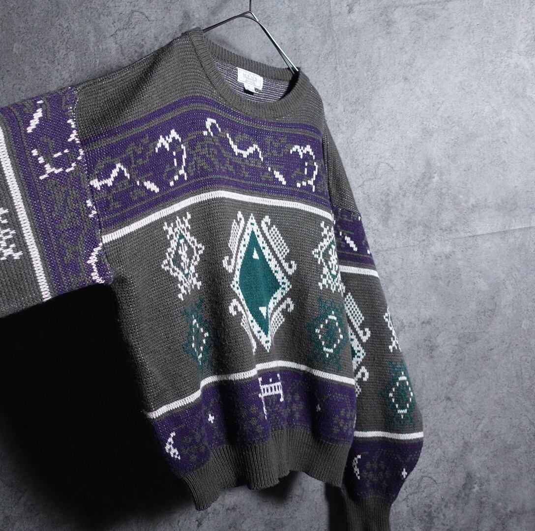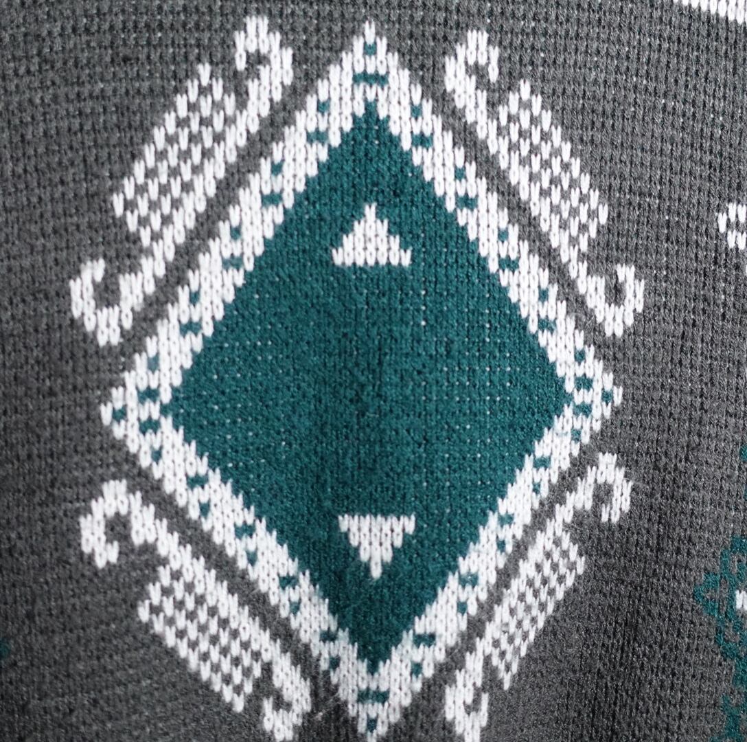 マルチカラーの抽象柄&ダイヤモチーフデザインニットが入荷です。