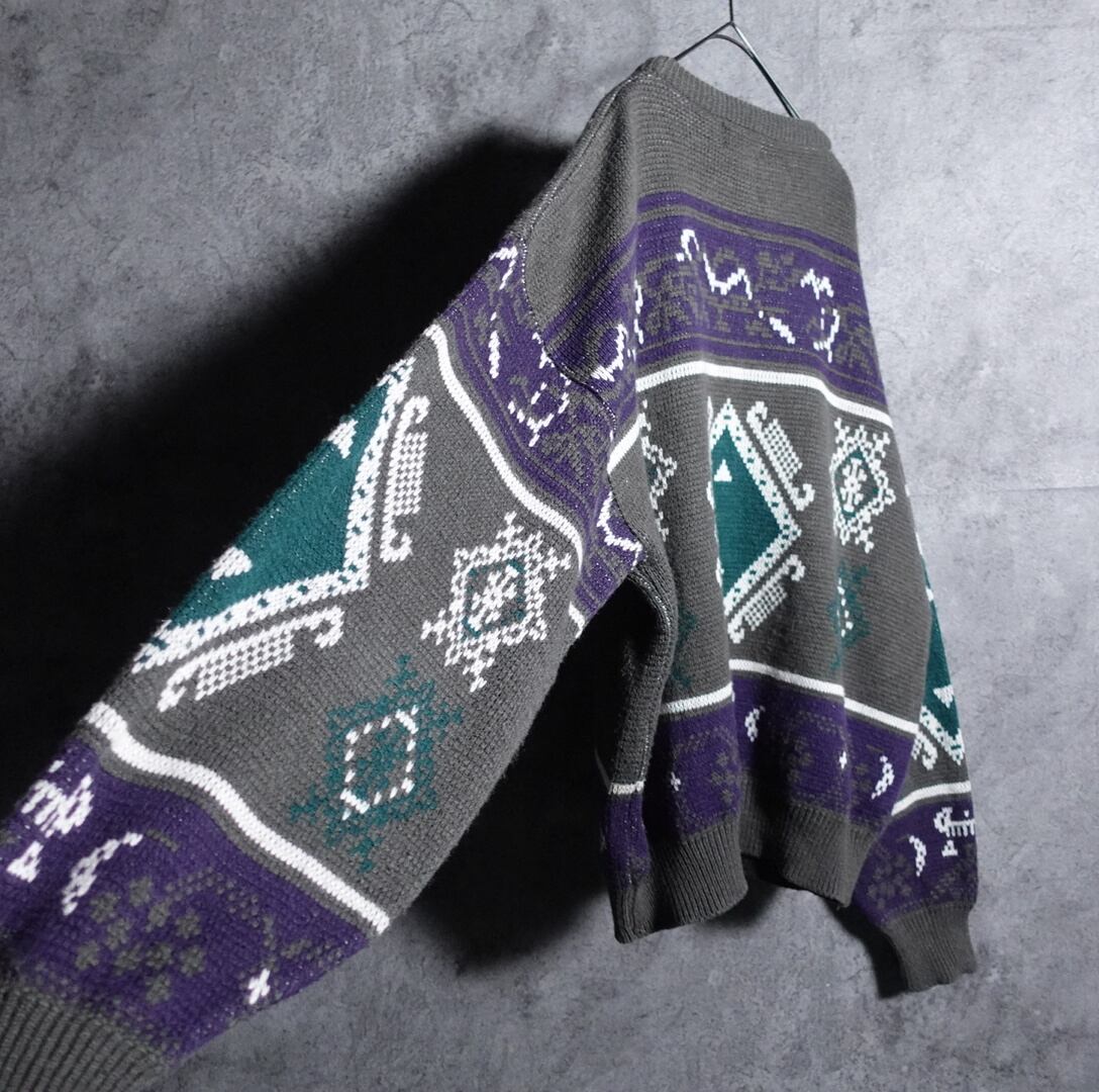 Multicolor Abstract Pattern & Diamond Motif Design Knit