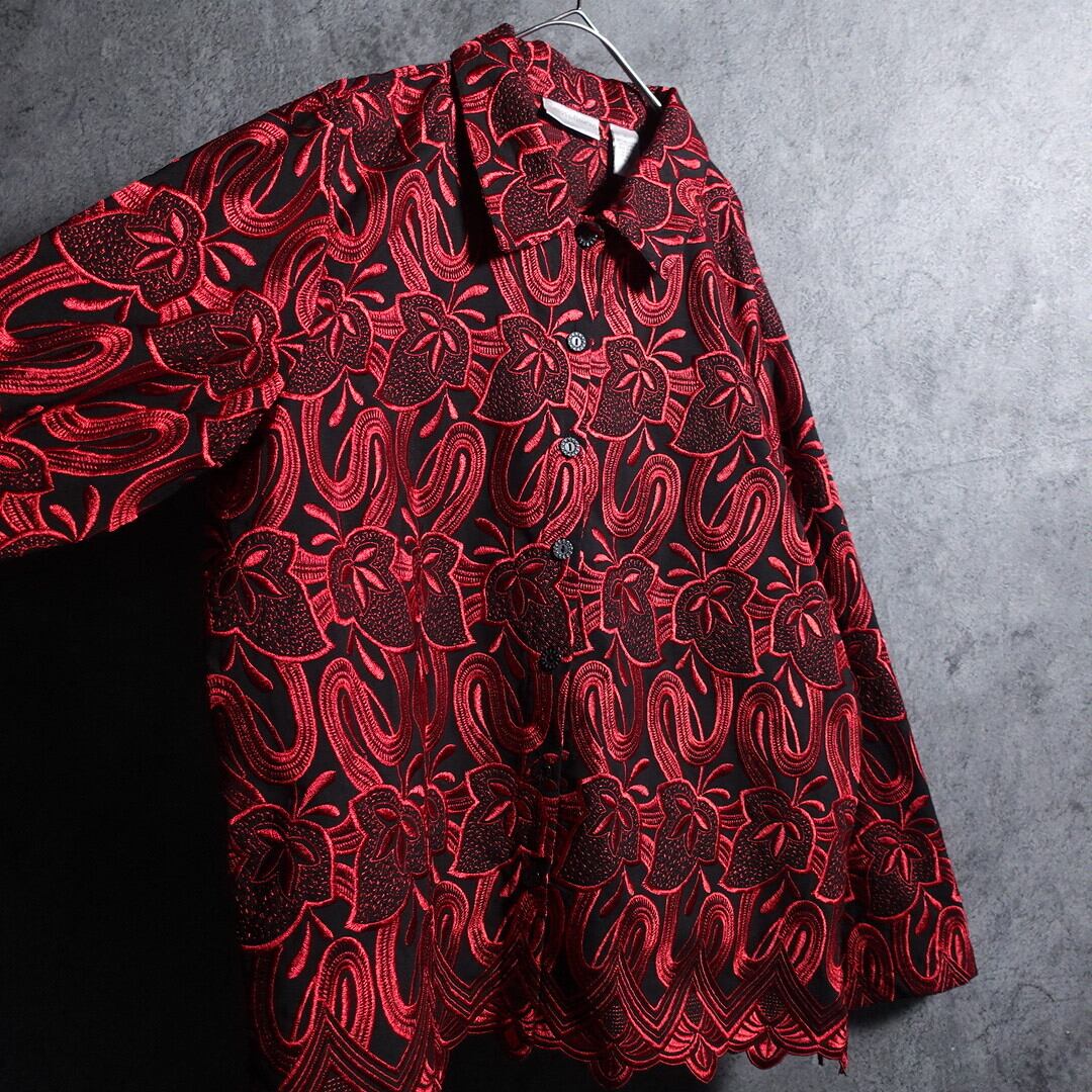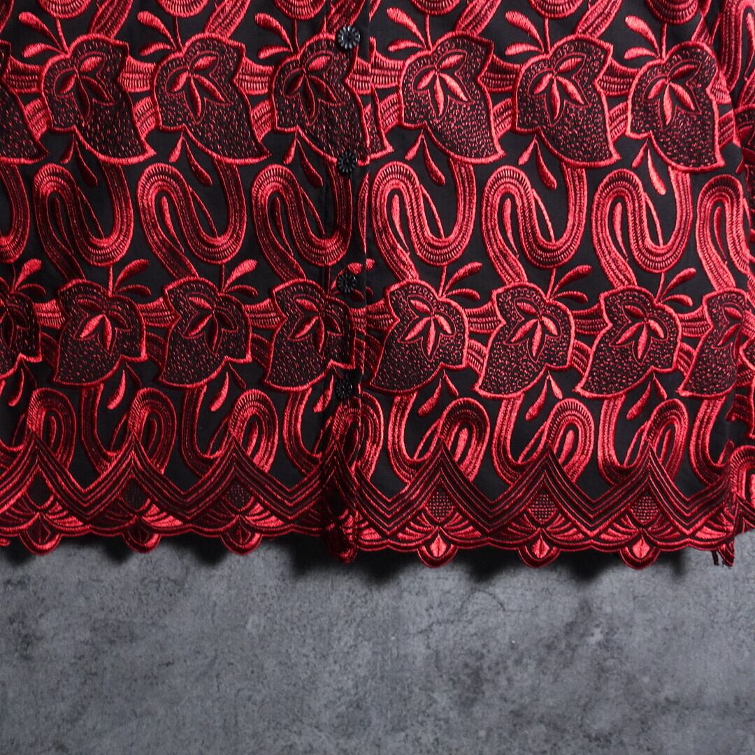 Black x Red Botanical Motif Embroidery Desgin Jacket