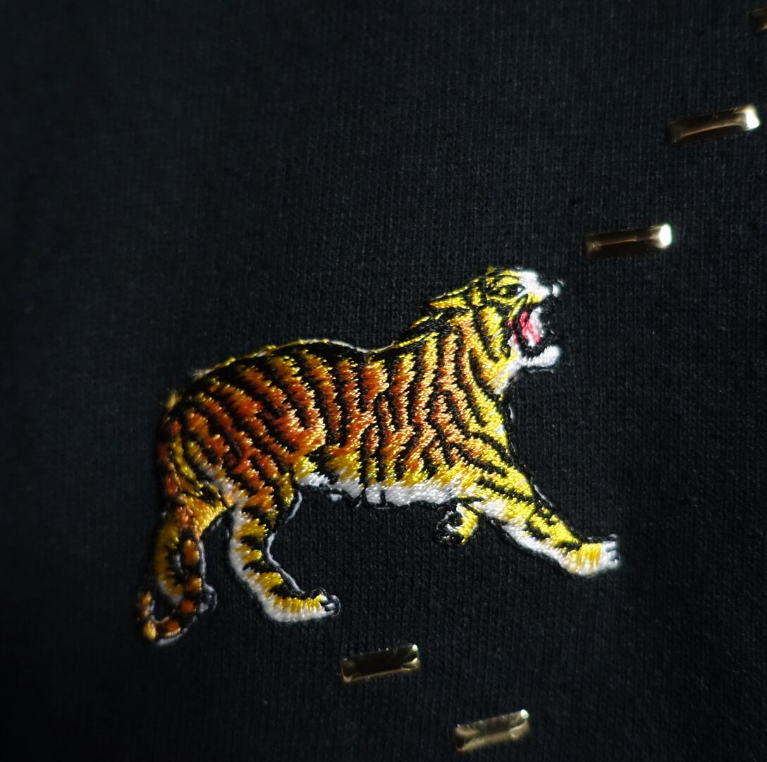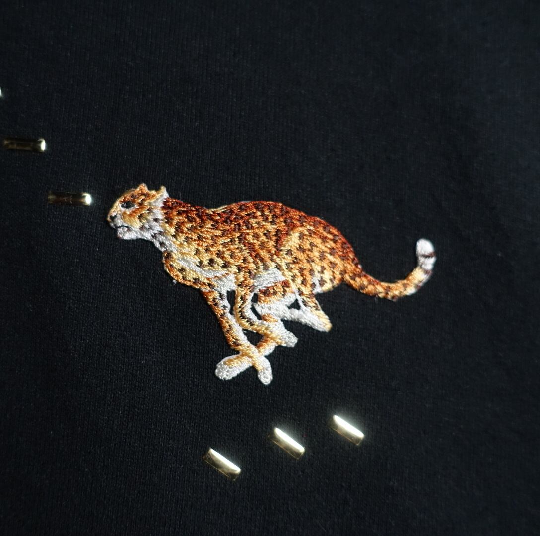 中央にはライオン、トラ、チーターの刺繍とスタッズを施した珍しいスペシャルなデザイン。