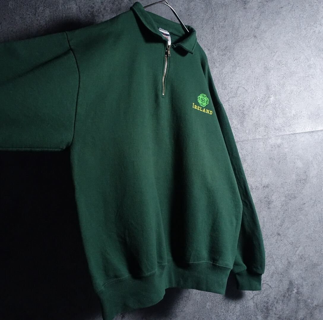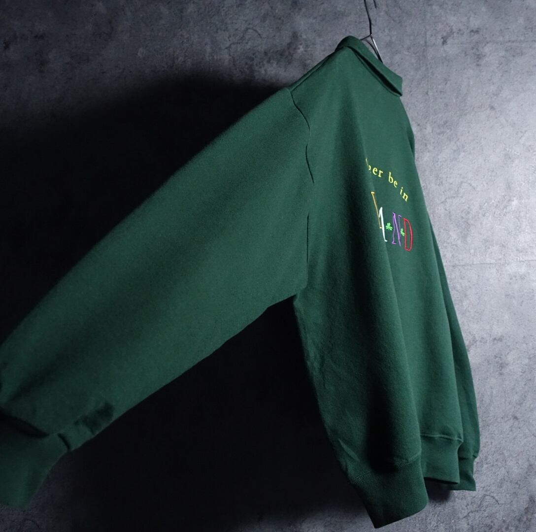 JERZEESよりグリーンの両面刺繍デザインのハーフジップスウェットが入荷です。