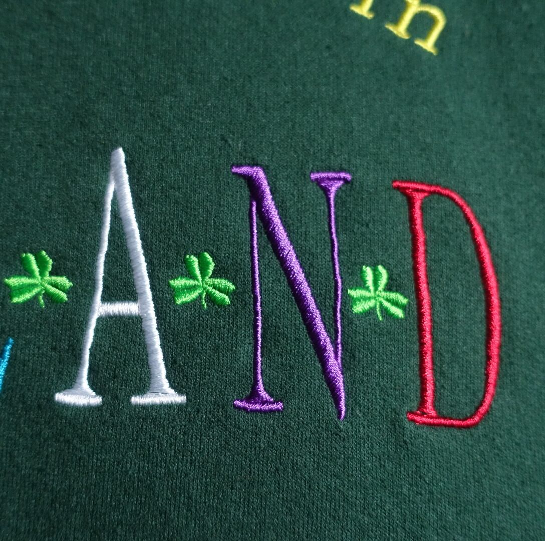 バックにはIRELANDとクローバーを色鮮やかに刺繍で大きく施した豪華な両面デザインとなっています。