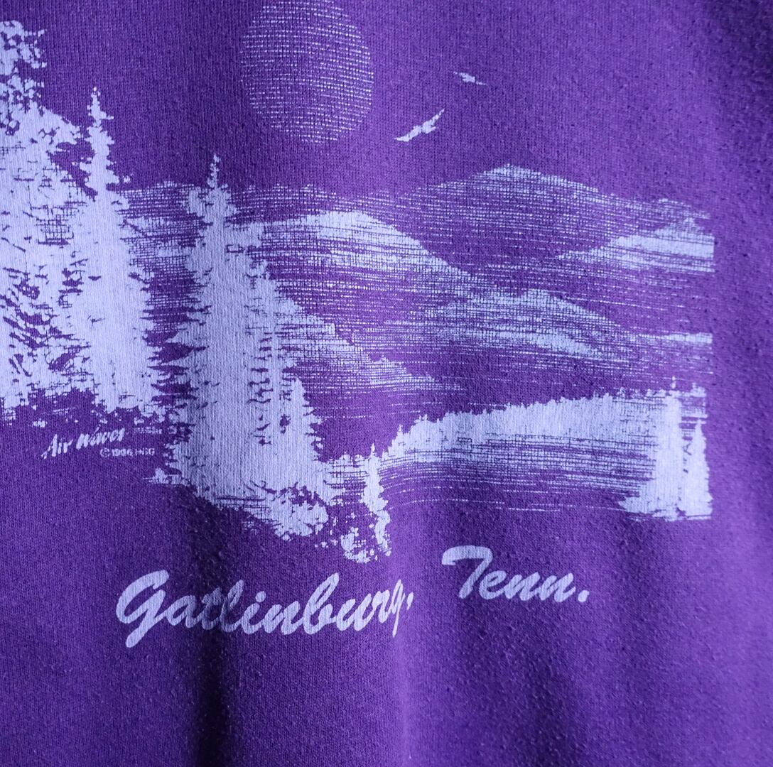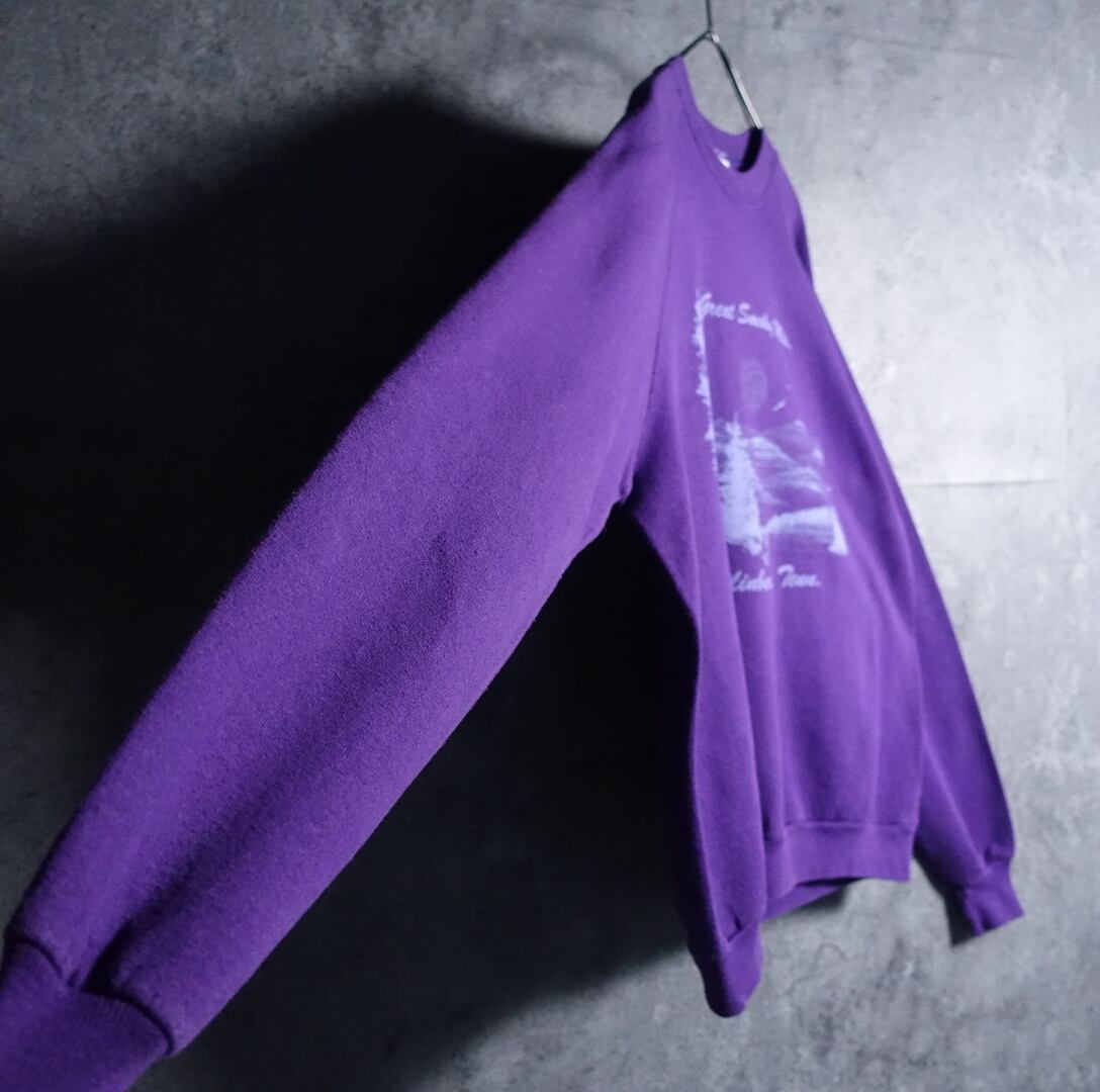 90年代アメリカ製のJERZEESよりパープルの風景画デザインスウェットが入荷です。