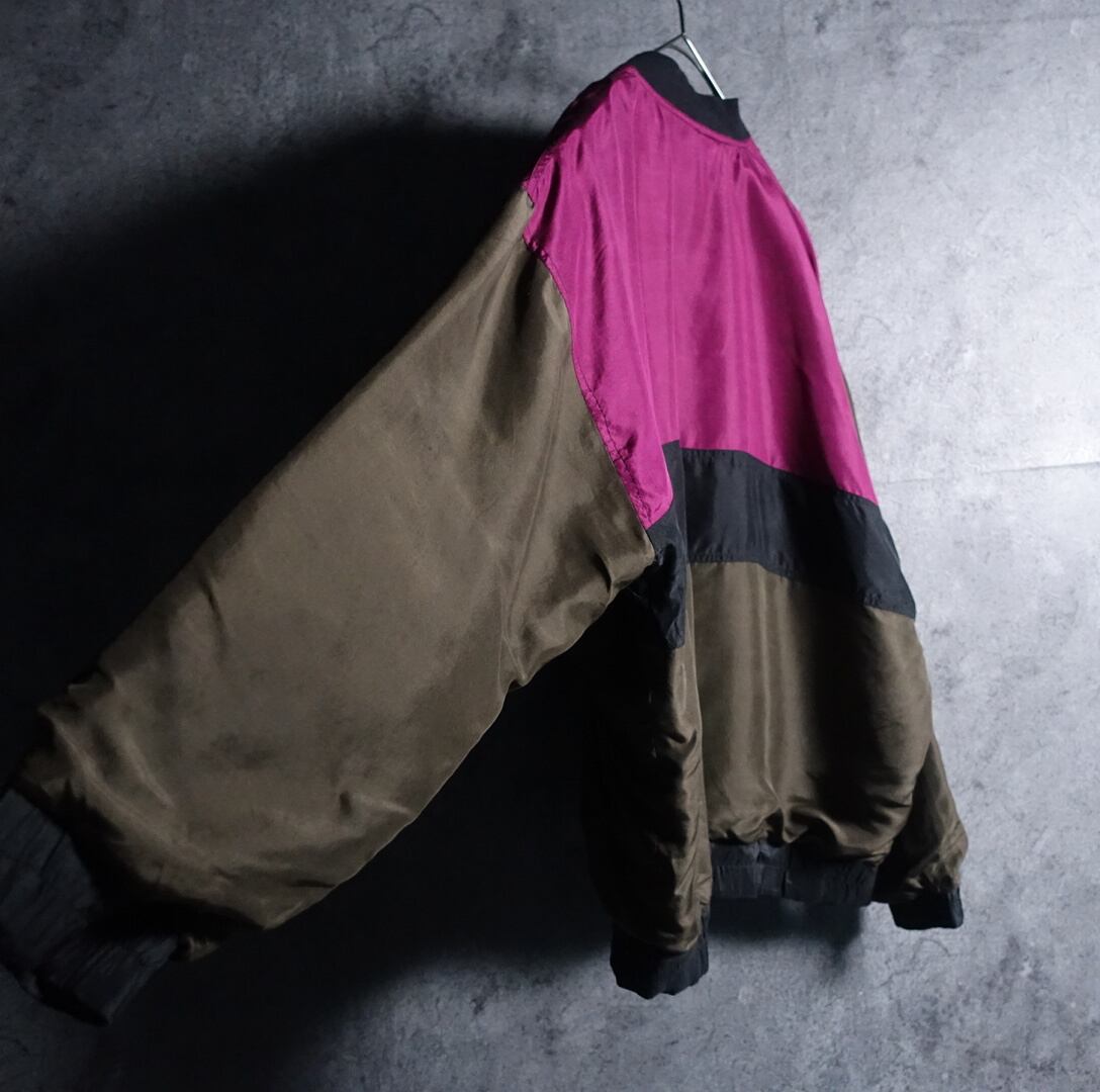 “ROBERT STOCK” Multicolor Switching Design Silk Blouson