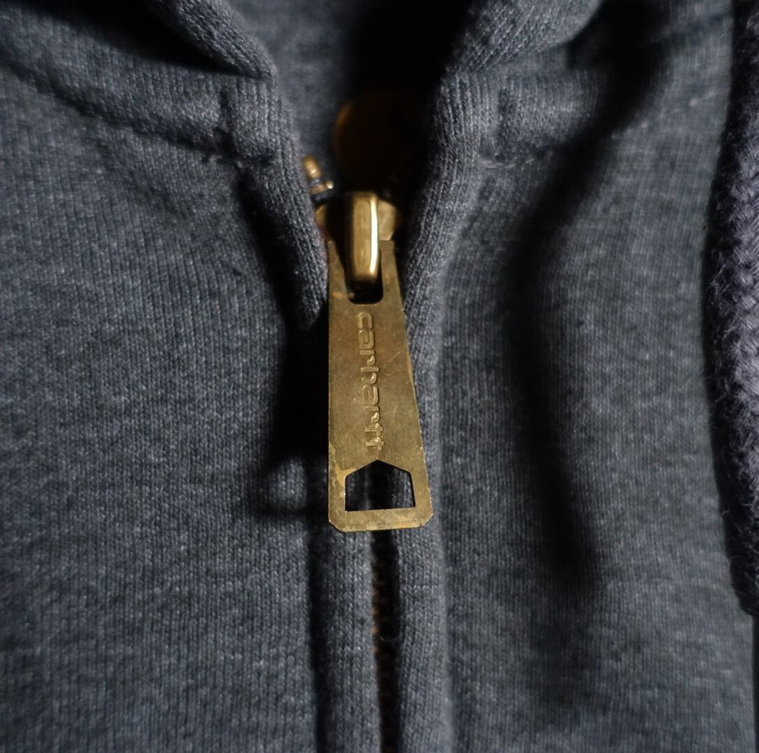 Carharttよりグレーのプリント&刺繍デザインジップパーカーが入荷です。