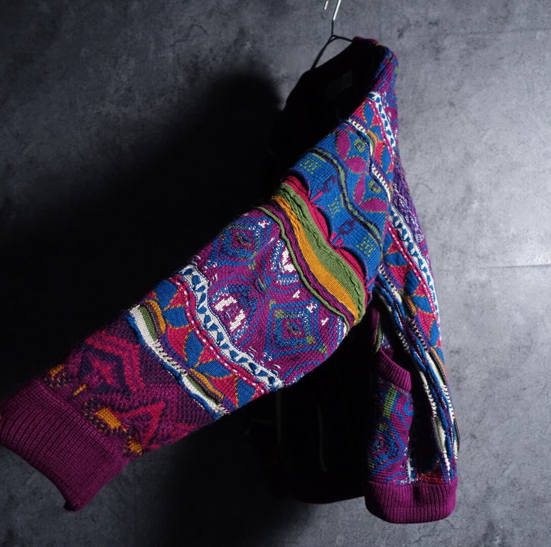 昨今人気が高く年々希少価値の高まっている3Dニットの中でも特にクオリティーの高い複数の柄とうねりを施したスペシャルなカーディガン。