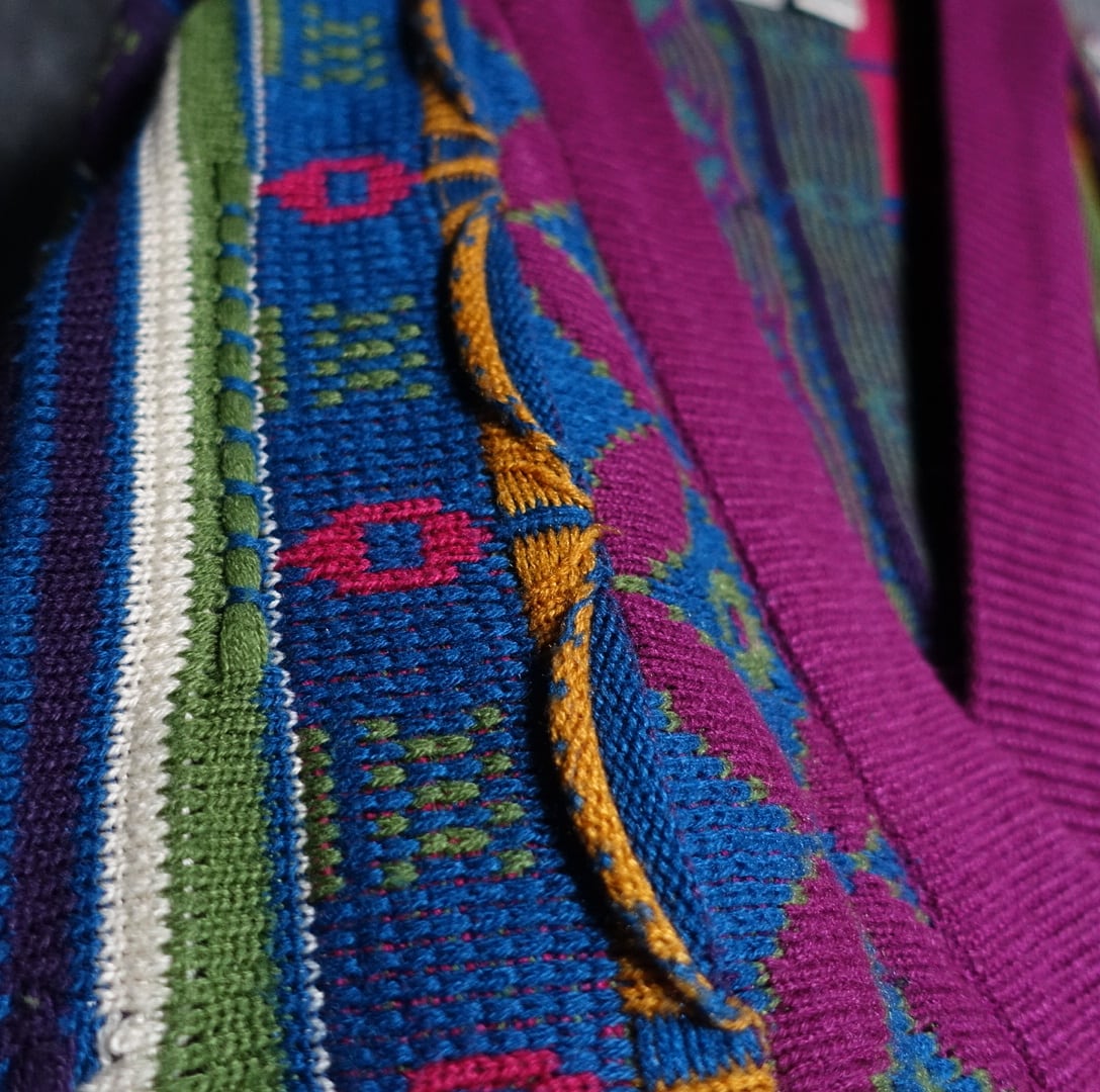 立体的な3Dのうねりのあるニッティングを全面にあしらい、さらに所々に幾何学模様や抽象的な柄をあしらったスペシャルなデザイン。