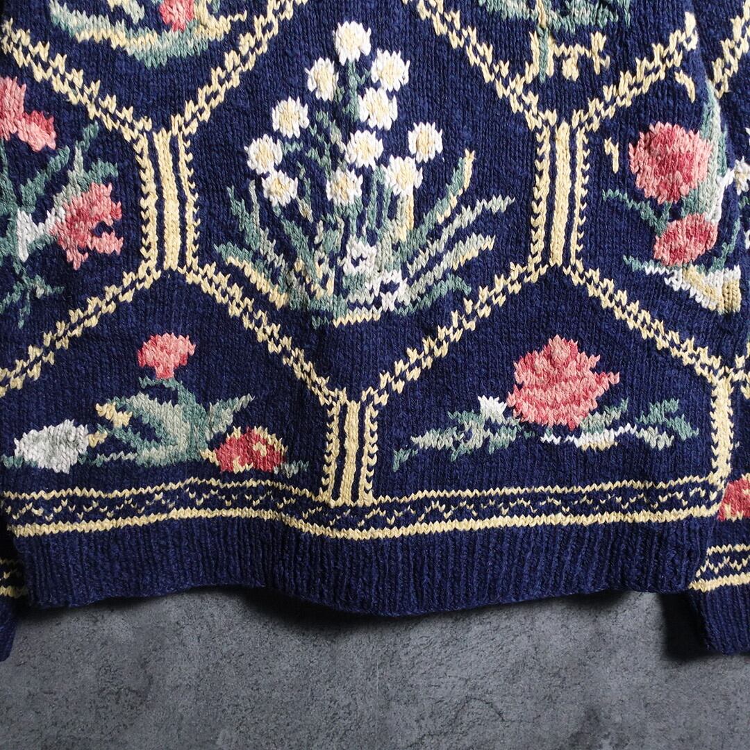 90s “L.L.Bean” Flower Motif Design Linen & Cotton Hand Knit