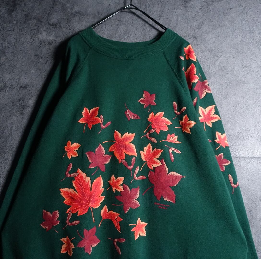 スペシャルなグリーンの紅葉プリントデザインスウェットが入荷です。