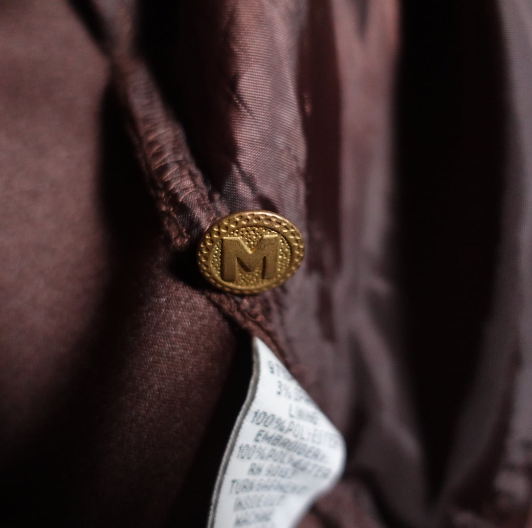 ボタンとジップトップが刻印入りの燻んだゴールドになっており、より一層このアイテムの雰囲気を高めてくれています。