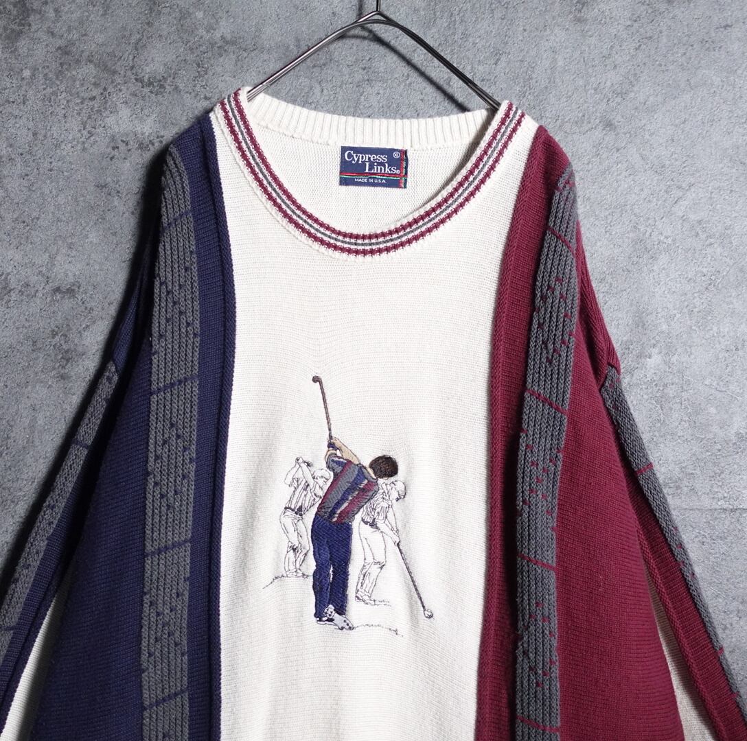 90年代アメリカ製のゴルファー刺繍デザインニットが入荷です。