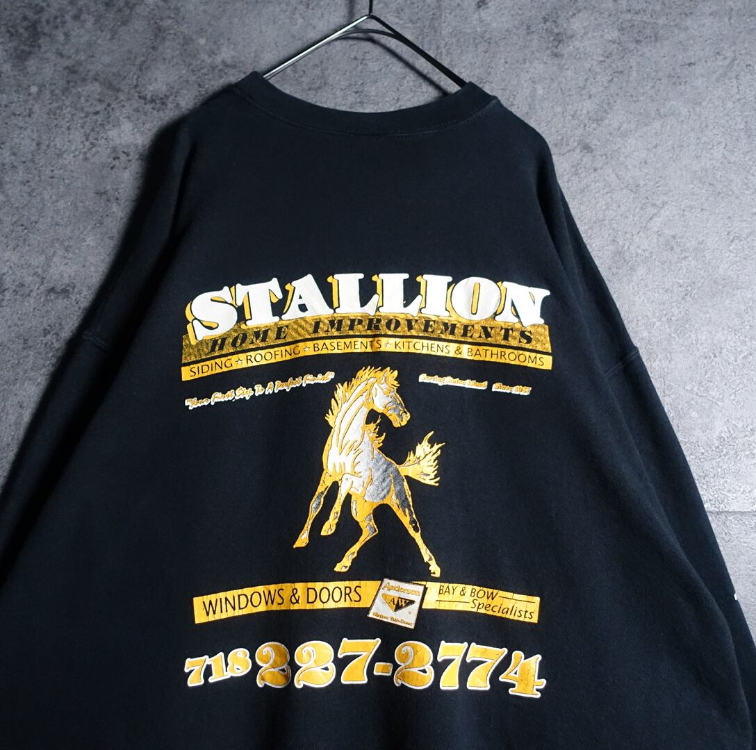 00sのFRUIT OF THE LOOMよりブラックの馬モチーフ両面プリントスウェットが入荷です。