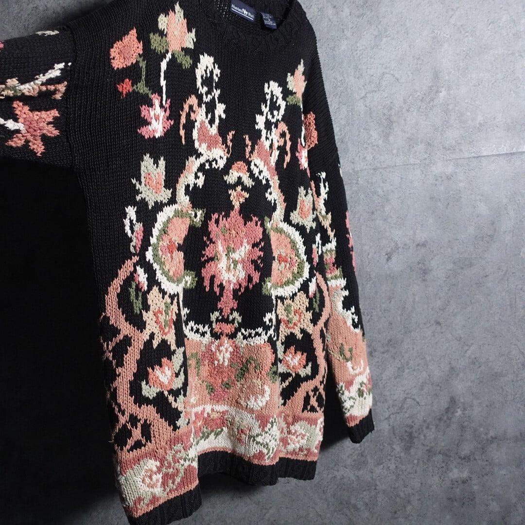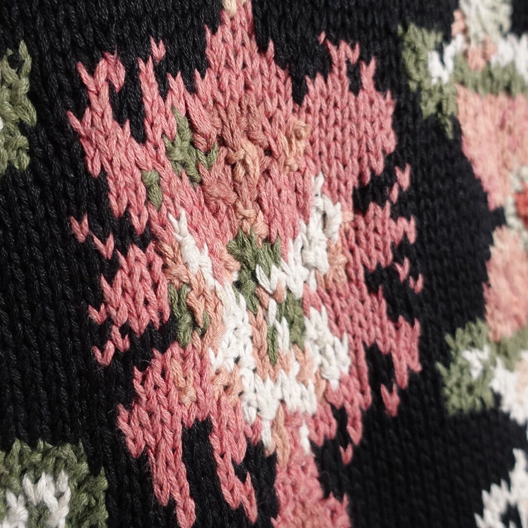 ブラックのフラワーモチーフコットンハンドニットが入荷です。