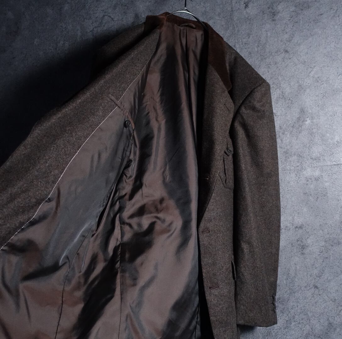 ラペルのみをコーデュロイ生地に切り替えた洒落たデザイン。