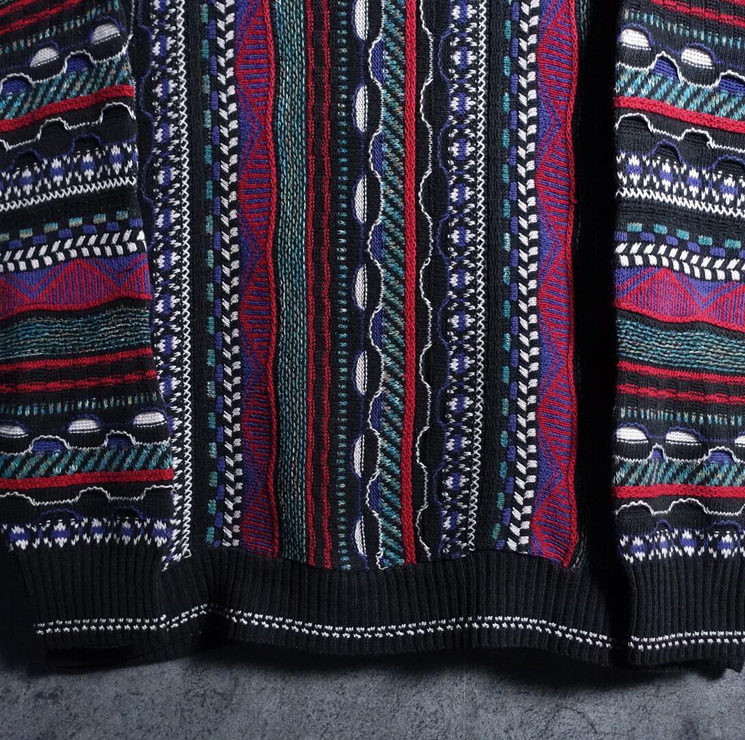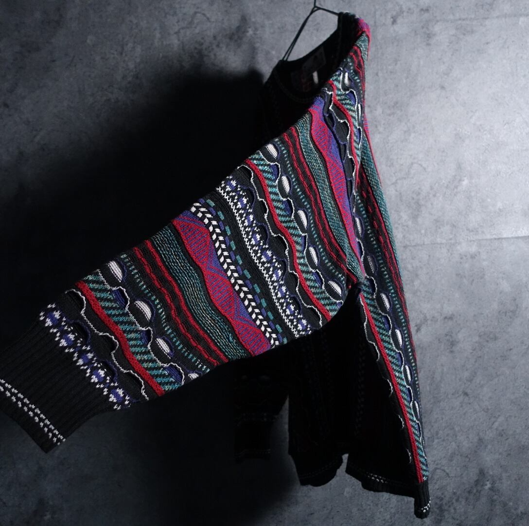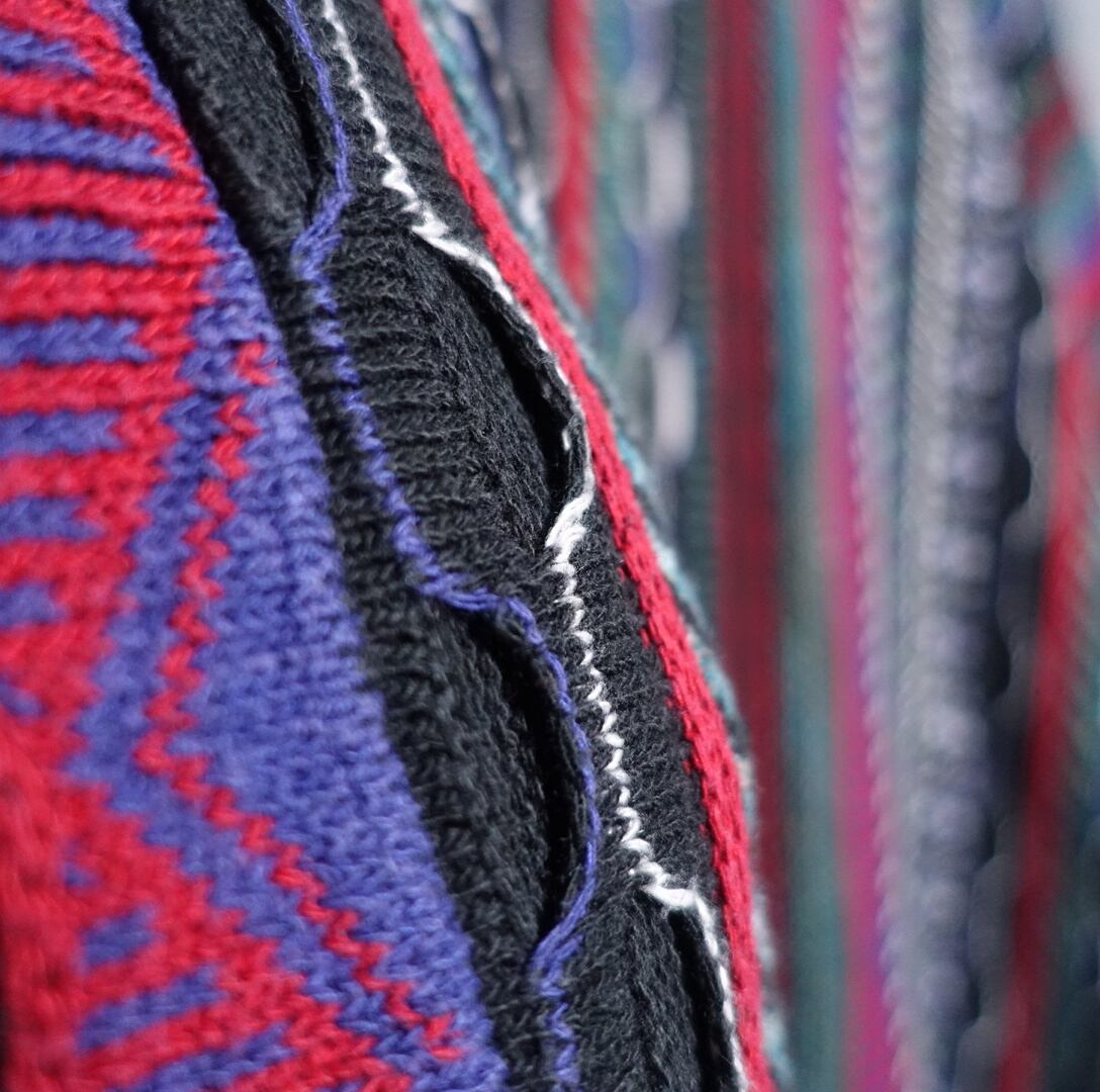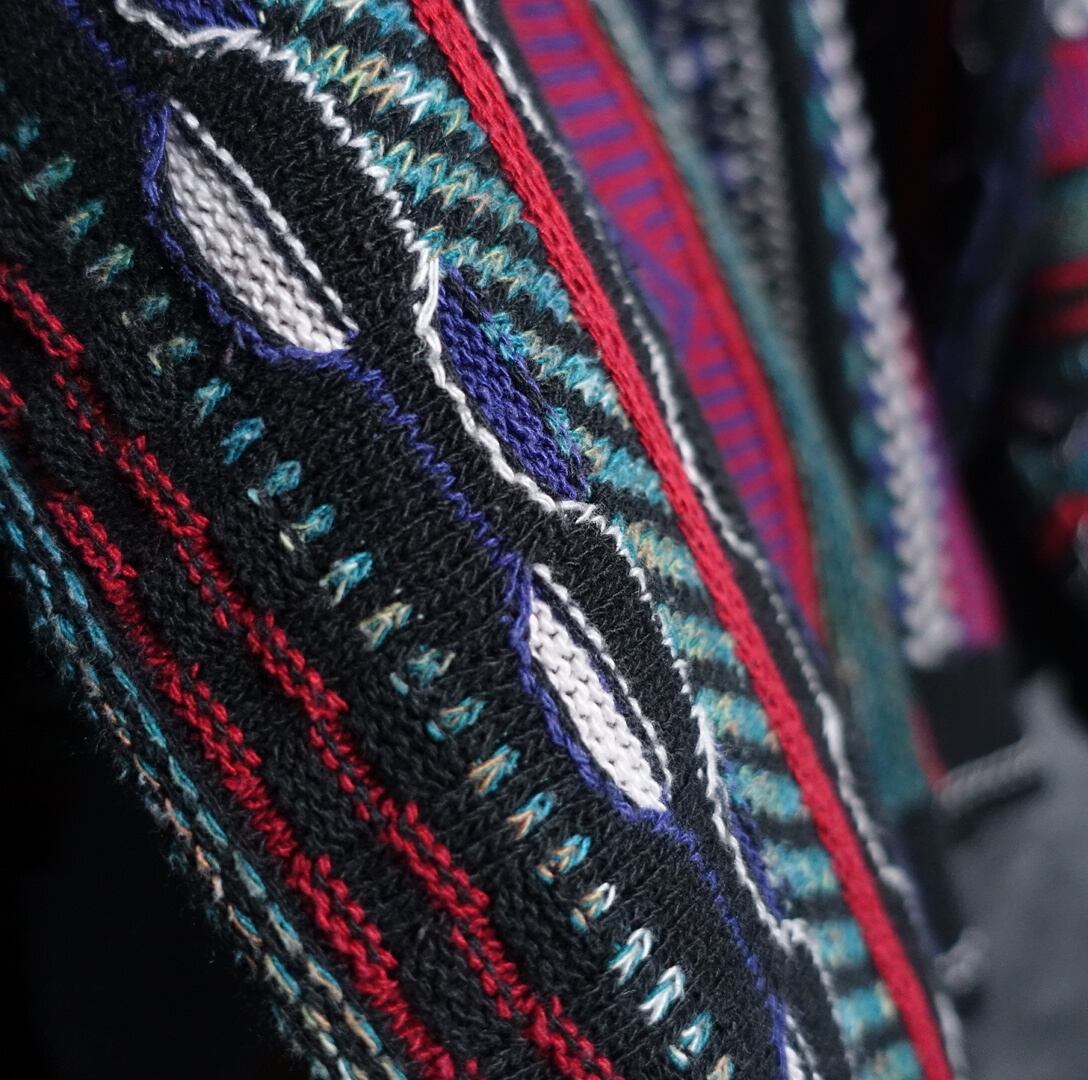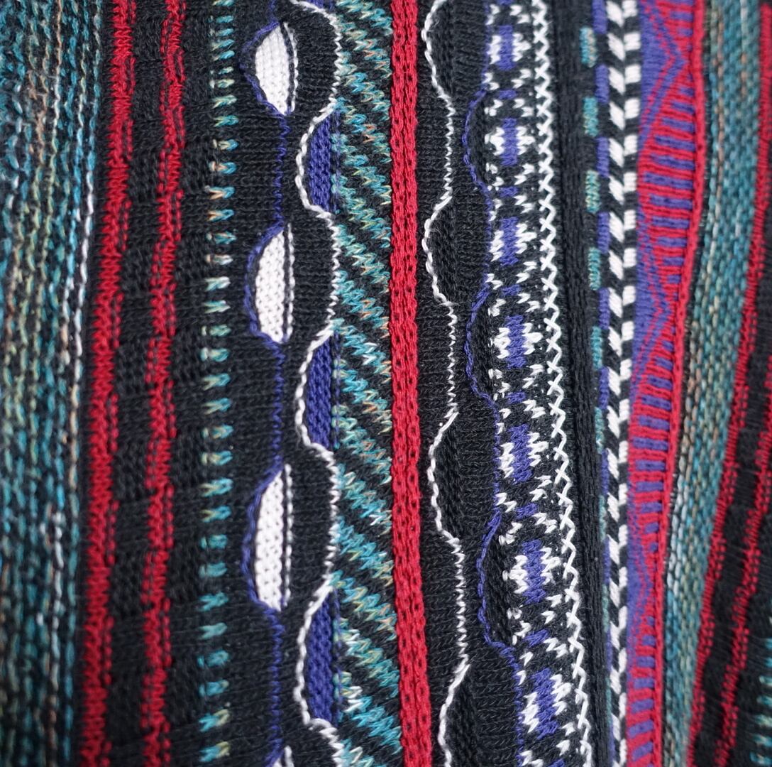 立体的な3Dのうねりのあるニッティングを全面にあしらい、さらに所々に幾何学模様をあしらったスペシャルなデザイン。