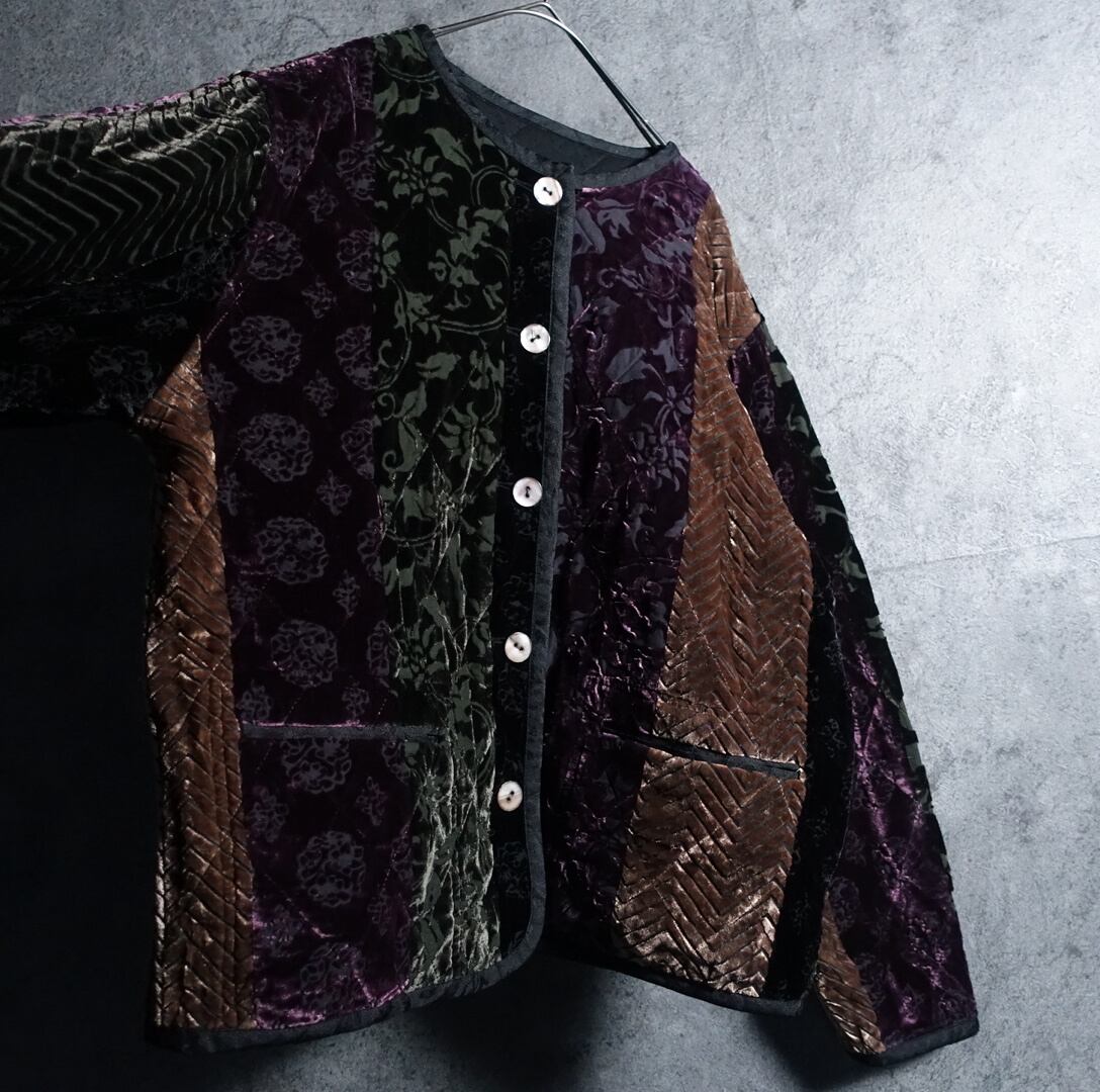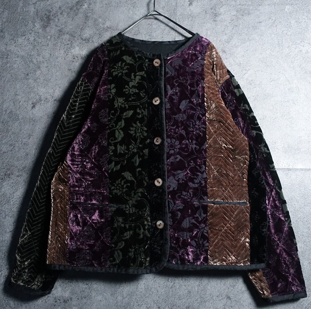 スペシャルなベロア生地の花柄デザインキルティングジャケットが入荷です。