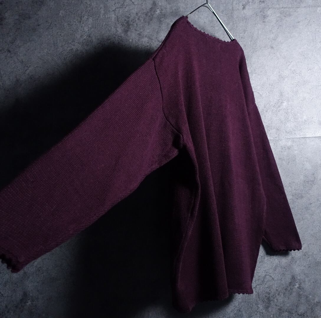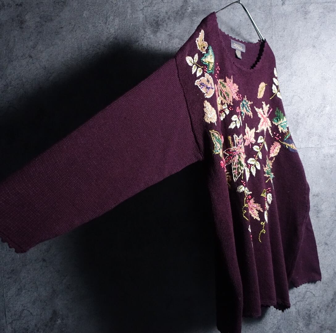 ワインレッドのボタニカルモチーフデザインニットが入荷です。