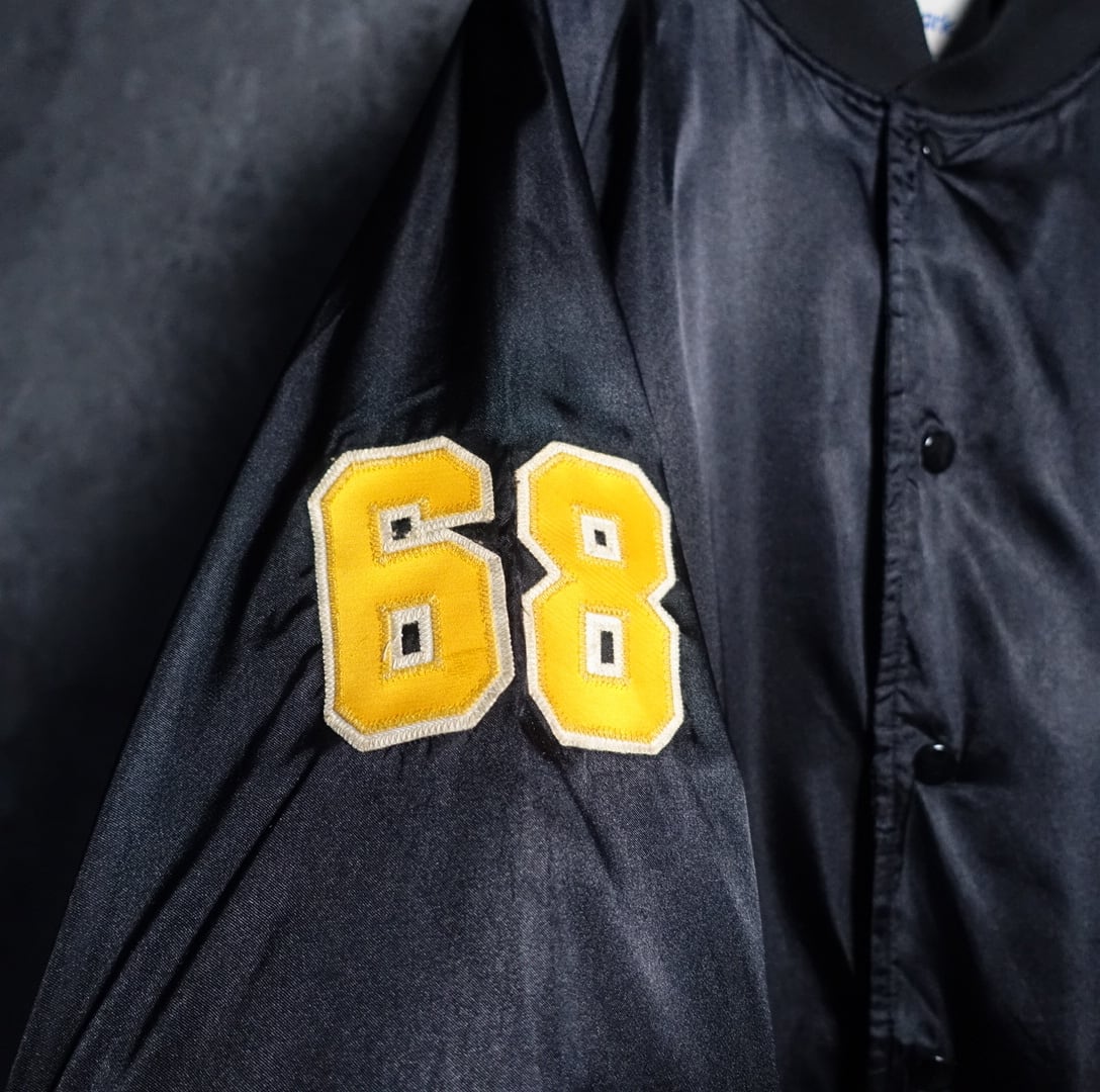 ブラックのロゴ刺繍デザインナイロンスタジャンが入荷です。