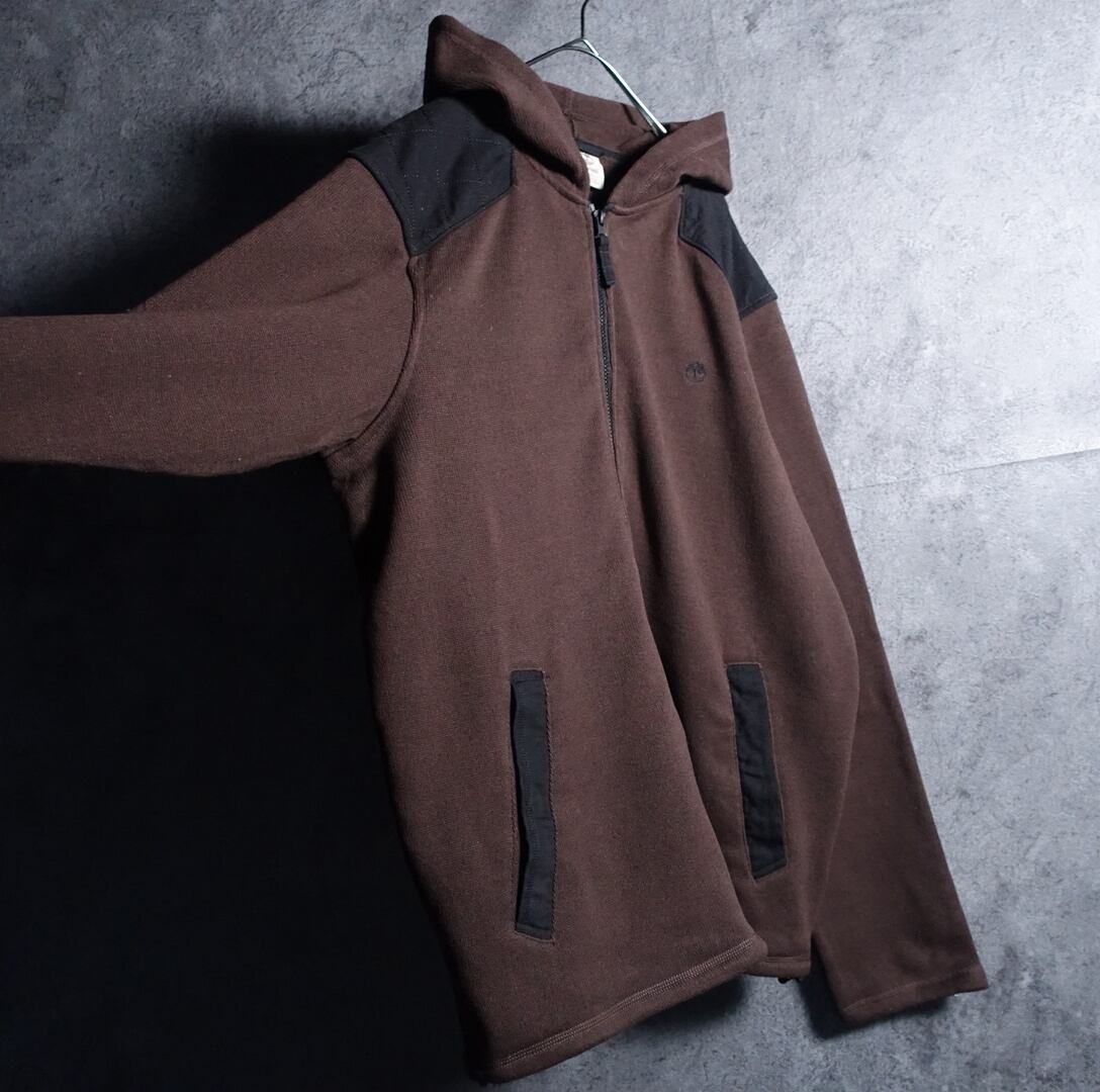 Timberlandよりブラウンのロゴ刺繍&キルティング切替デザインニットパーカーが入荷です。