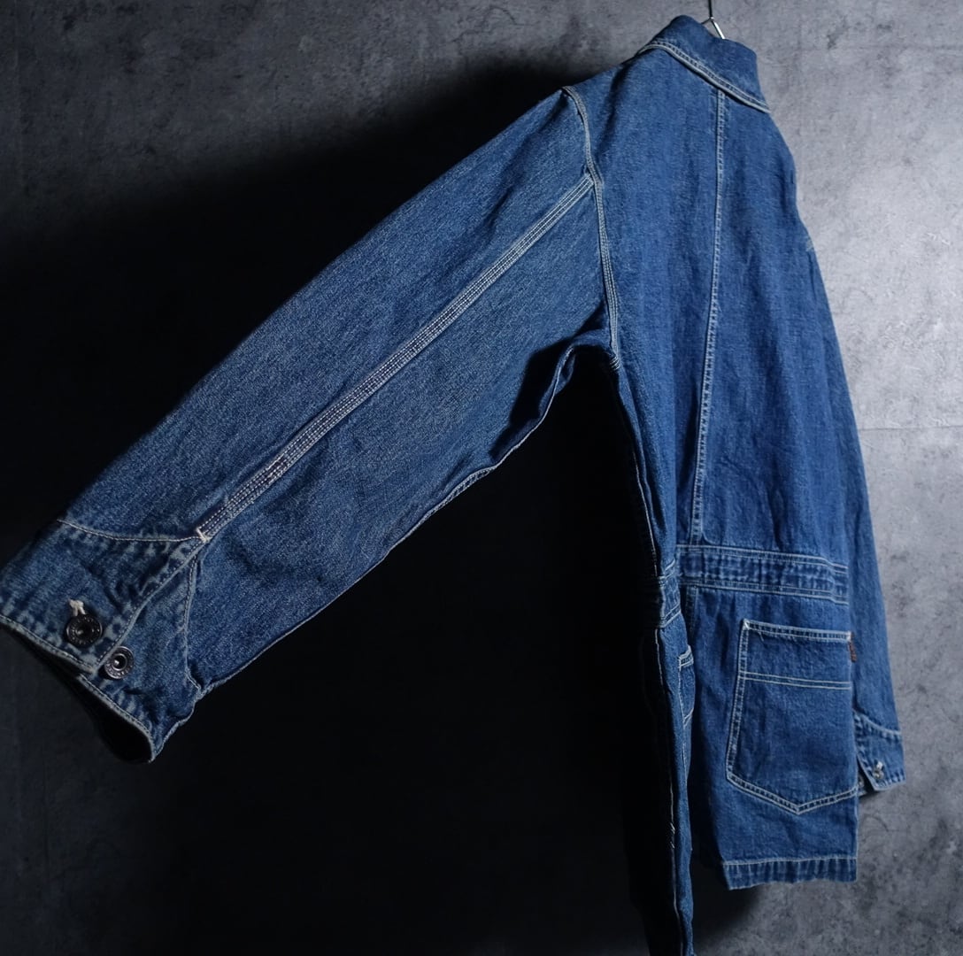 デニムをベースにフラップ、スラッシュ、サイド、バックなどの様々な合計8つのポケットを施した機能性は勿論、デザインとしても素晴らしいマルチポケットデザイン。